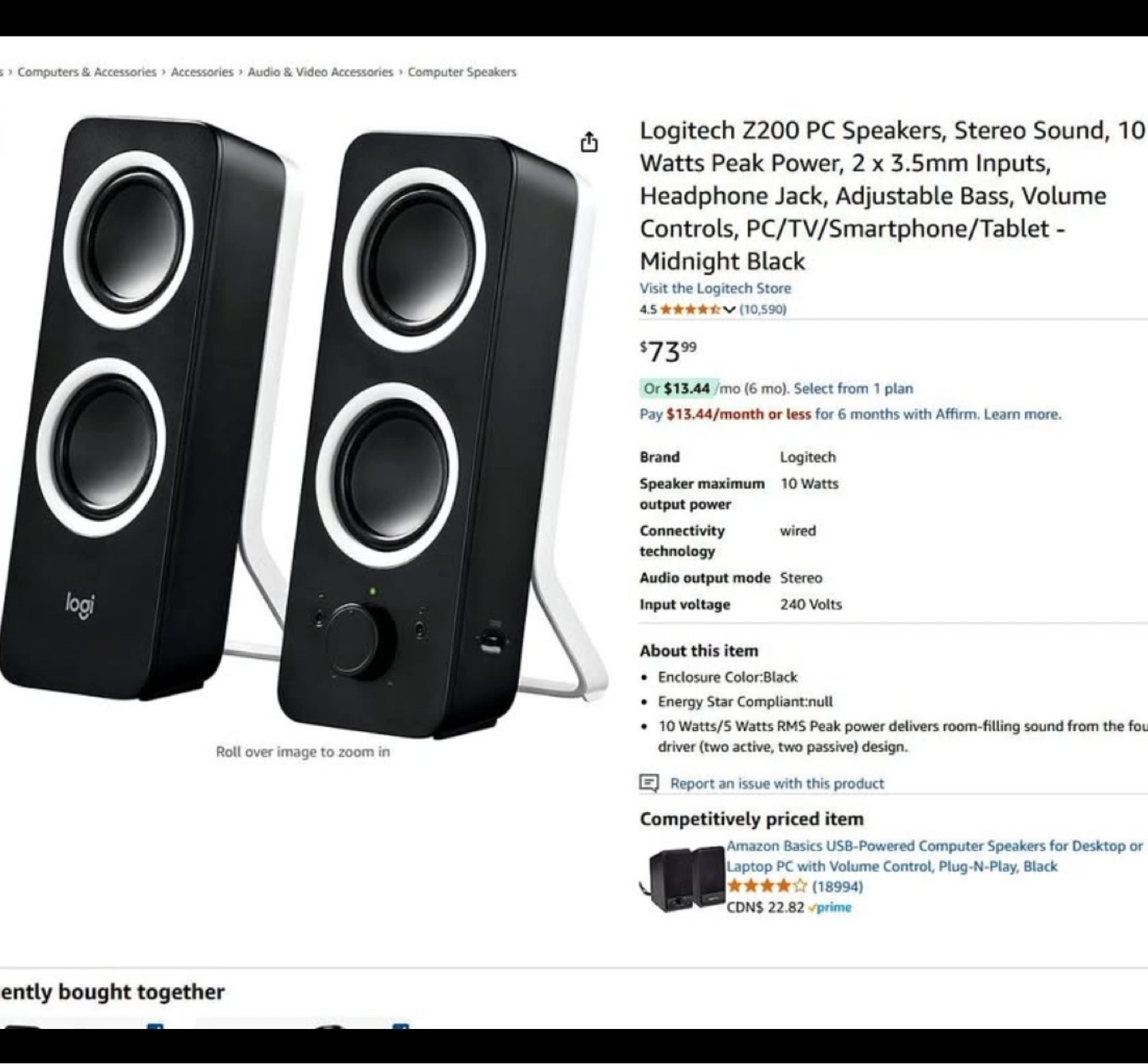 Stereo sound, 10 Watts peak power. Two 3.5mm inputs, headphone jack. Adjustable bass and volume controls. Works with PCs, TVs, smartphones, and tablets.