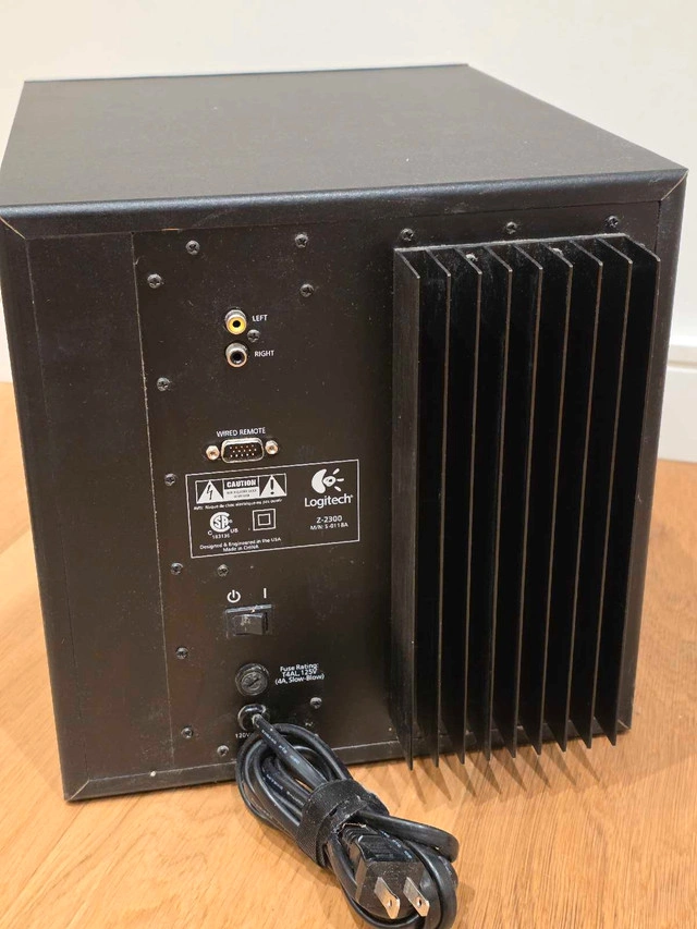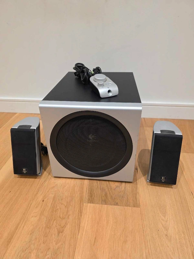 10Mint condition, like new. Logitech's top-of-line THX-Certified 2.1 Speaker System 200W RMS (400W Peak). Users rave about the Logitech Z-2300 boasting its exceptional audio quality, build, and design. The control pod’s convenience and ease of use make it a popular feature among users, allowing them to quickly adjust the volume and bass levels or turn off the system when needed. As a THX-certified speaker system, the Logitech Z-2300 offers impressive audio quality across multiple genres of content. The satellite speakers provide clear high notes and defined mid-tones while the subwoofer delivers smooth bass notes that don’t overpower other frequencies. Whether it’s for gaming, enjoying your favorite music or movie, the audio performance of the Z-2300 is hard to beat. What's included: Speakers: 2 satellites, 1 subwoofer Cables included: Power cord, Color coded audio cables SoundTouch™ wired remote control