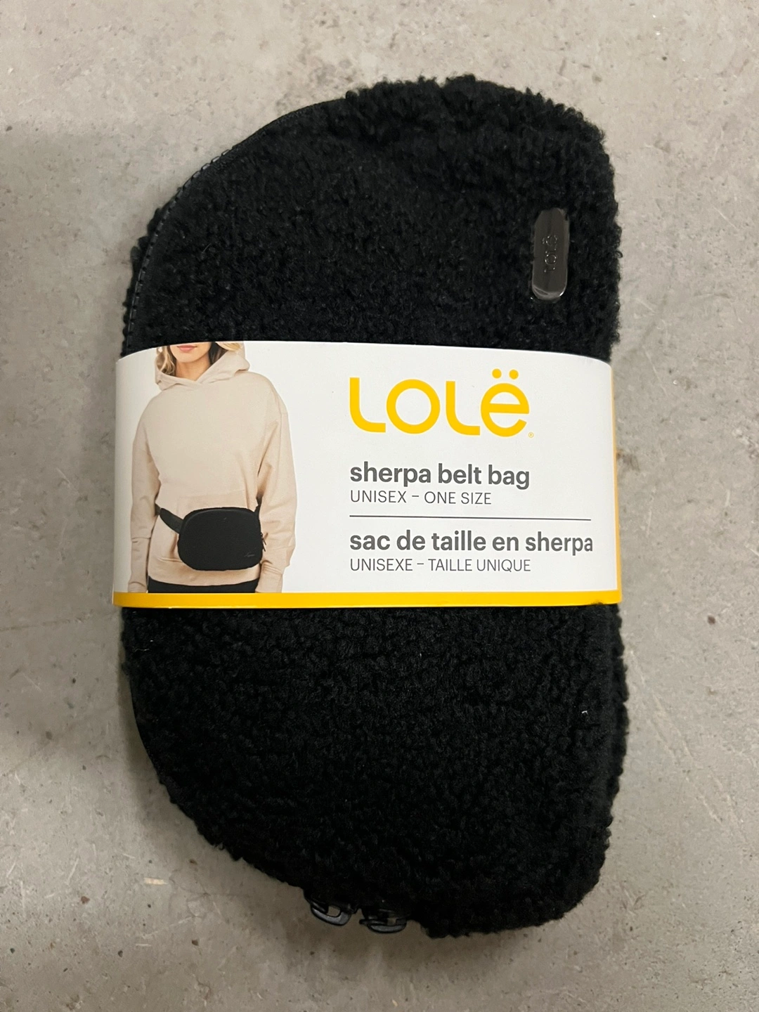 55Brand new LOLë sherpa belt bag. Unisex, one size. Features a secure zipper pocket and adjustable strap. Black sherpa exterior.