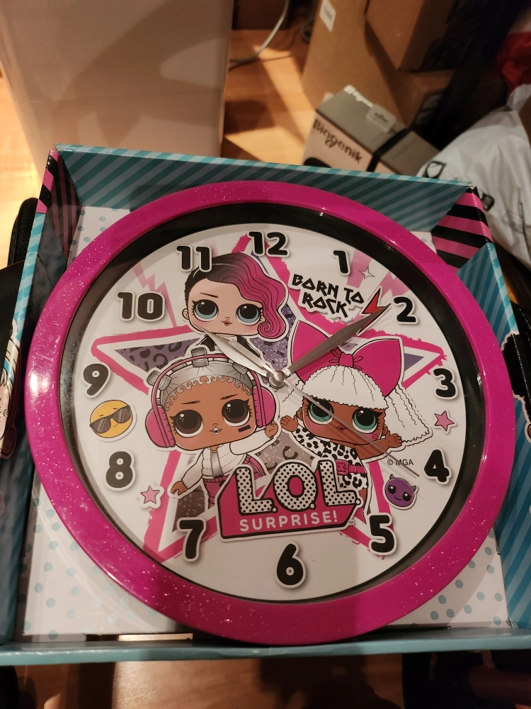 I have a LOL Surprise! wall clock for sale. It features the LOL Surprise! dolls and has a pink frame. It's in great condition and comes in its original box!
