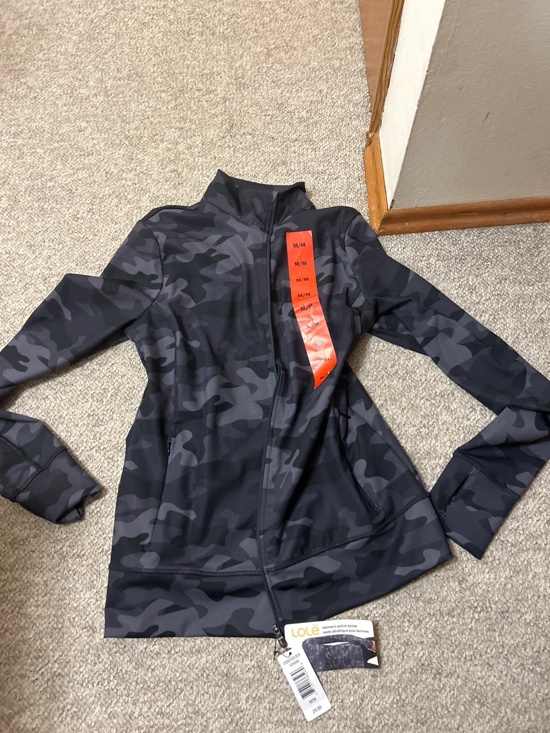15This Lolë women's active jacket is in excellent condition and ready for a new home! It's a size medium with a stylish camo pattern. Originally bought for $24.99.