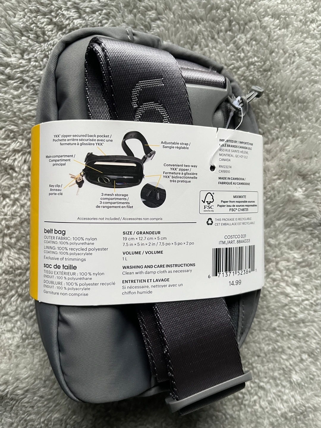 32Grey belt bag. Adjustable strap. Three compartments. Includes a zippered back pocket.