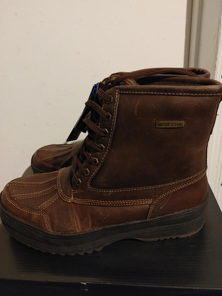 🥕LONDON FOG BROWN GENUINE LEATHER WINTER BOOTS 🥕BRAND NEW WITH ALL TAGS 🥕MENS SIZE 11 🥕200 GRAMS THINSULATE INSULATION 🥕$140 RETAIL 🥕I ALSO HAVE THE EXACT MODEL IN BLACK. 🥕I AM LOCATED IN THE YONGE AND STEELES AREA FOR PICKUP ONLY.