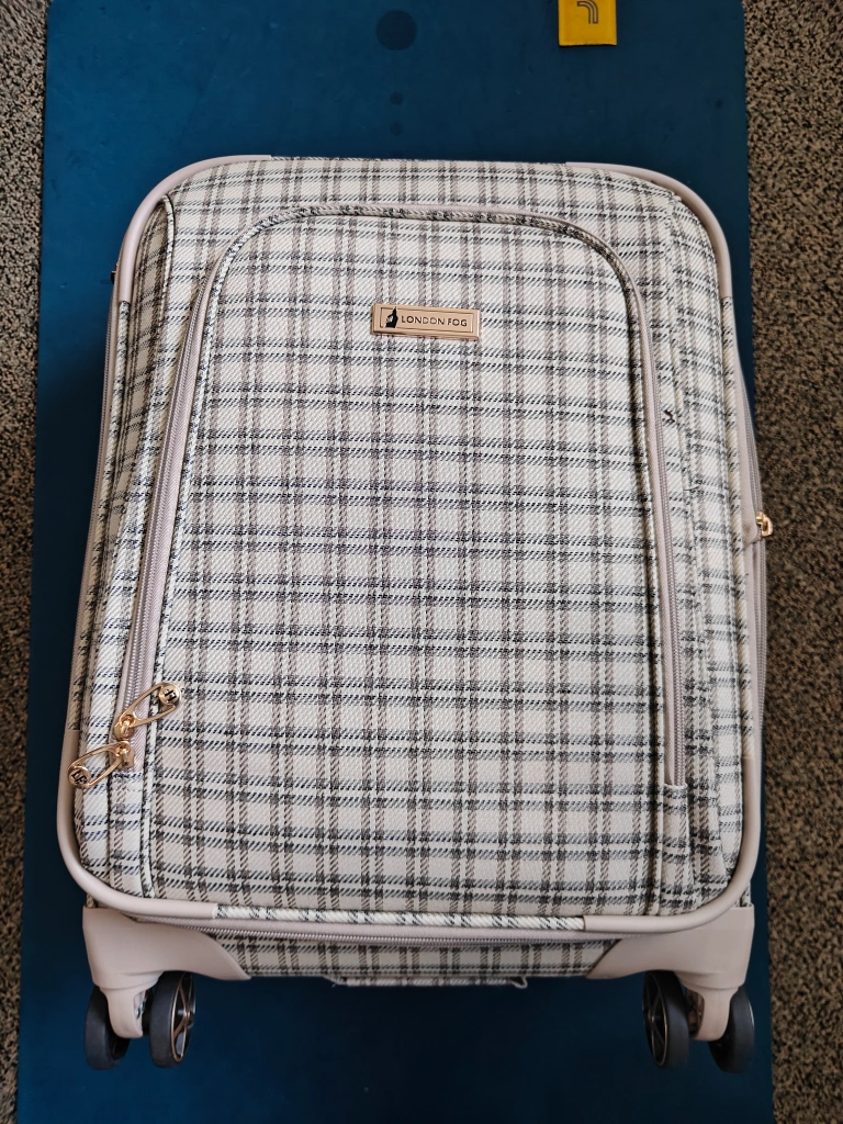 London Fog carry-on suitcase in a plaid pattern. Perfect for your next trip! It has a retractable handle and smooth-rolling wheels for easy maneuvering. The interior is spacious and features multiple compartments to keep your belongings organized. Bought it from Homesense for $75.00, brand new, never used for travel yet. * Available until Nov 26th 2025.