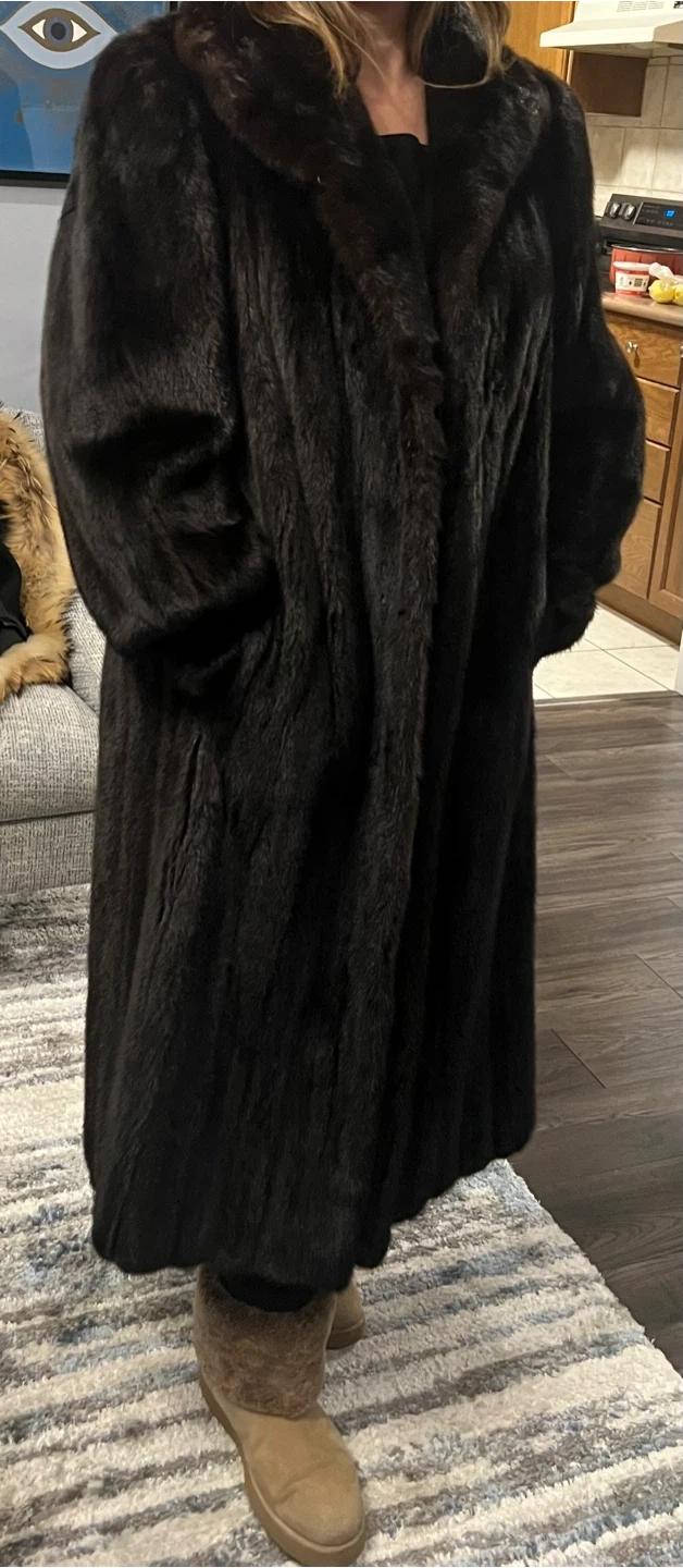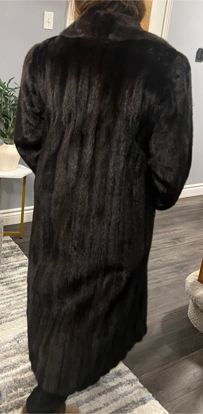 10Selling a long, black fur coat. It's in great condition and perfect for the cold weather! It has a classic look and would look great with any outfit