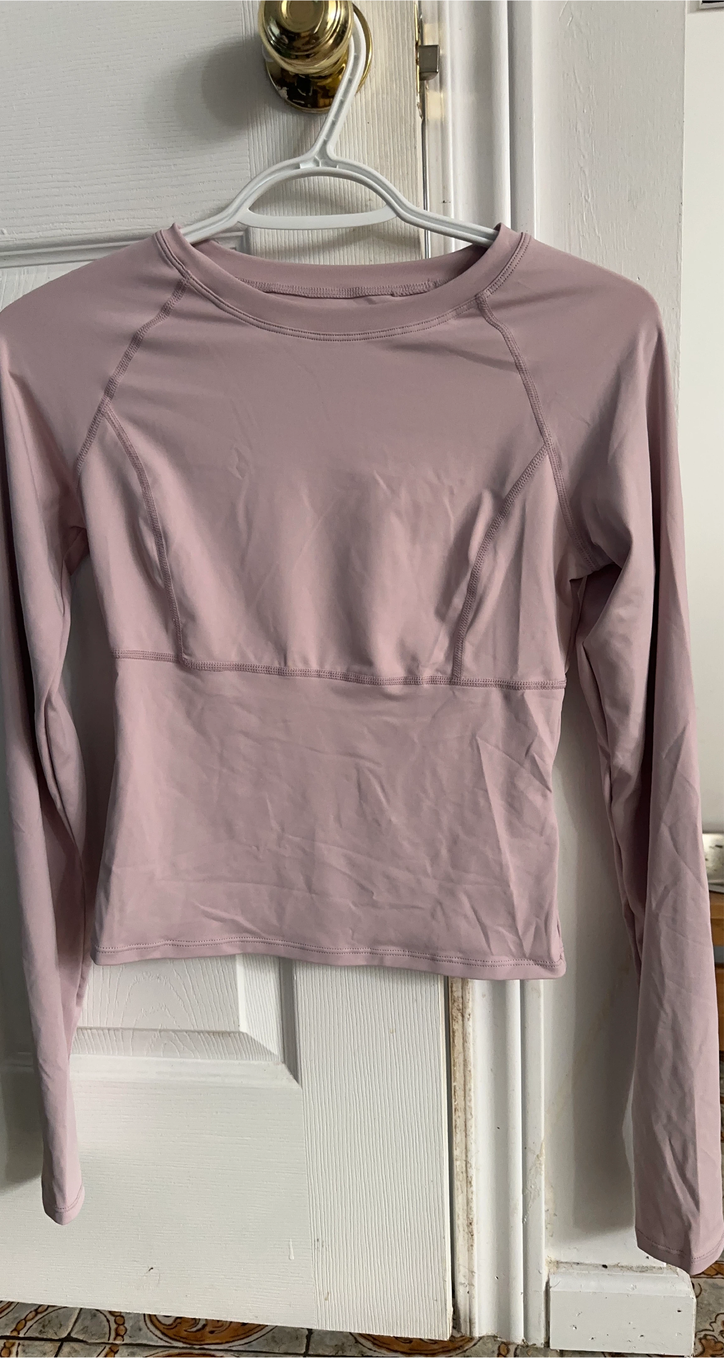 65Selling a long sleeve crop top in a lovely light pink colour! It's in great condition and ready for a new home. Perfect for workouts or casual wear!