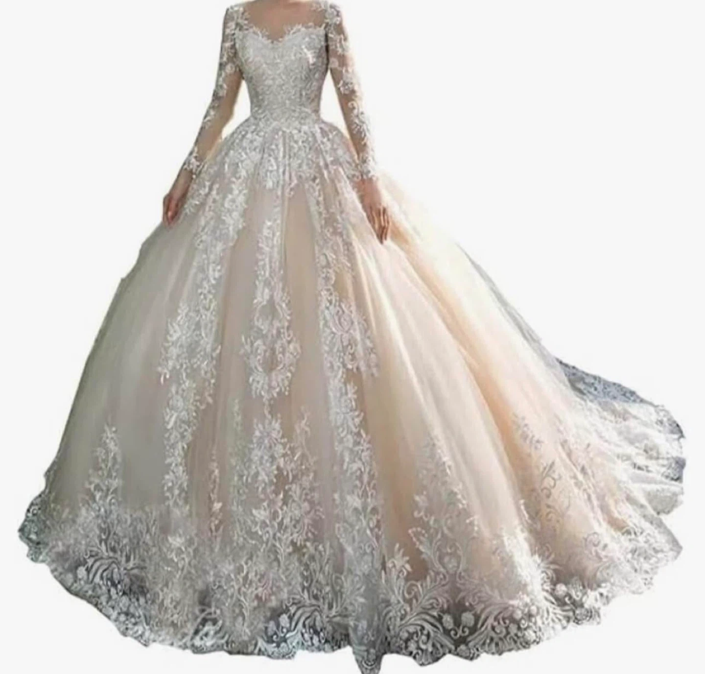10BRAND NEW NEVER WORN - Long Sleeve Lace Bridal Ball Gown Train A-Line Wedding Dress for Bride Plus Size 16