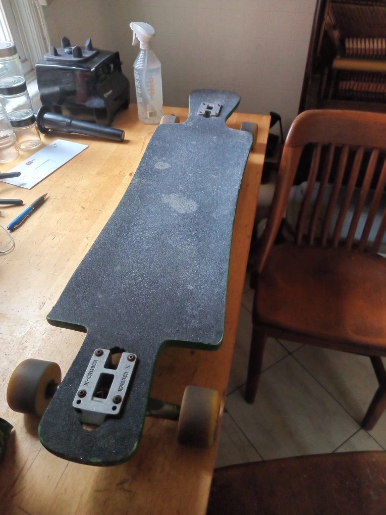 68Selling a used longboard skateboard. It has some wear and tear, but still rides well. Perfect for cruising around town or hitting the hills