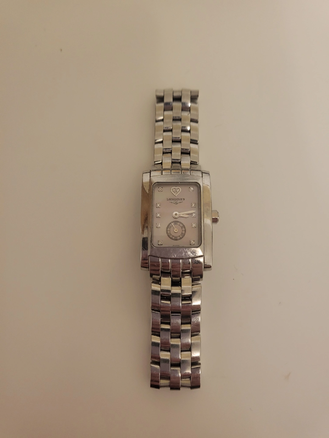 10Selling a beautiful Longines DolceVita ladies watch. It's in great condition and features a stainless steel bracelet and a rectangular case. A classic and elegant timepiece!