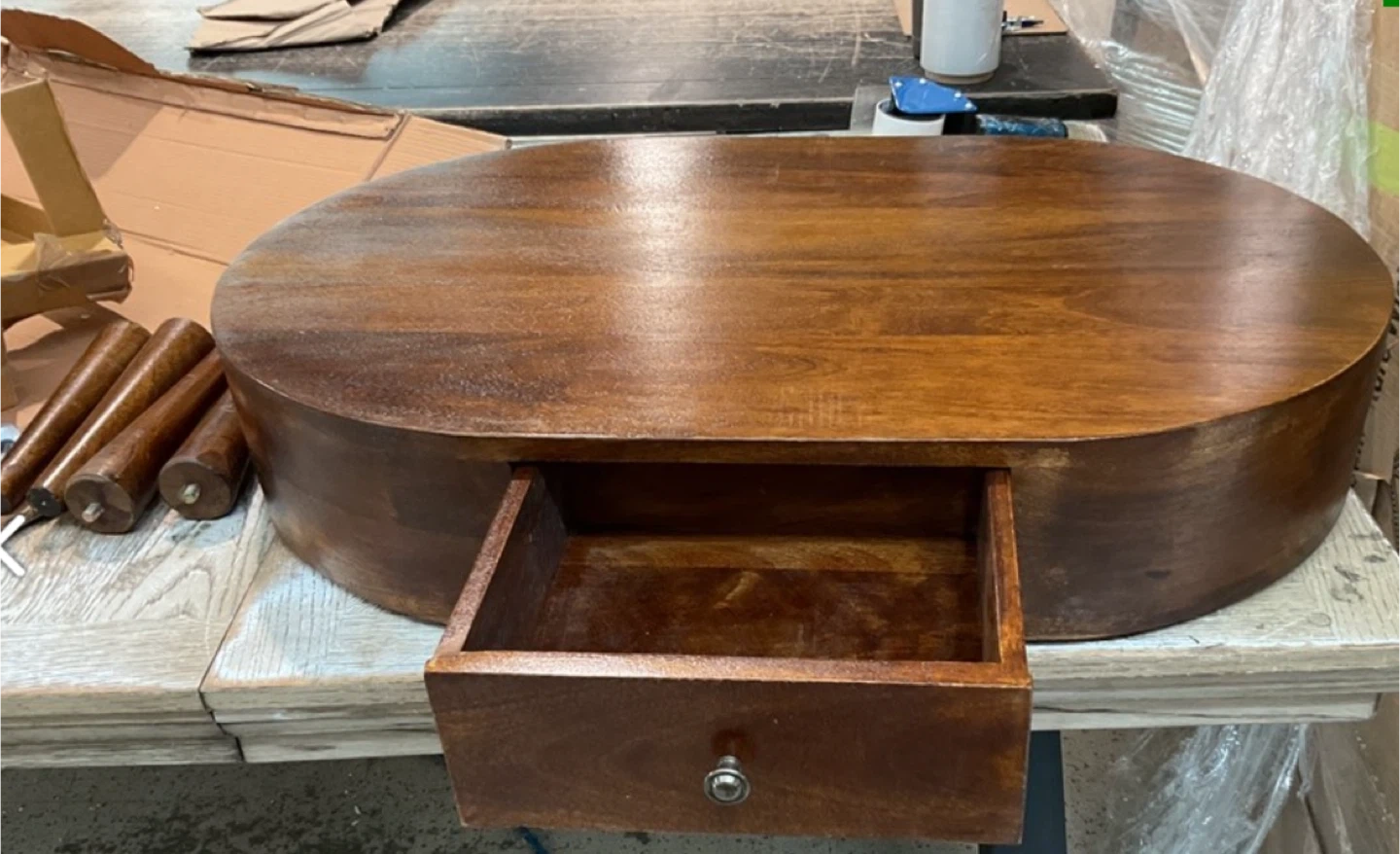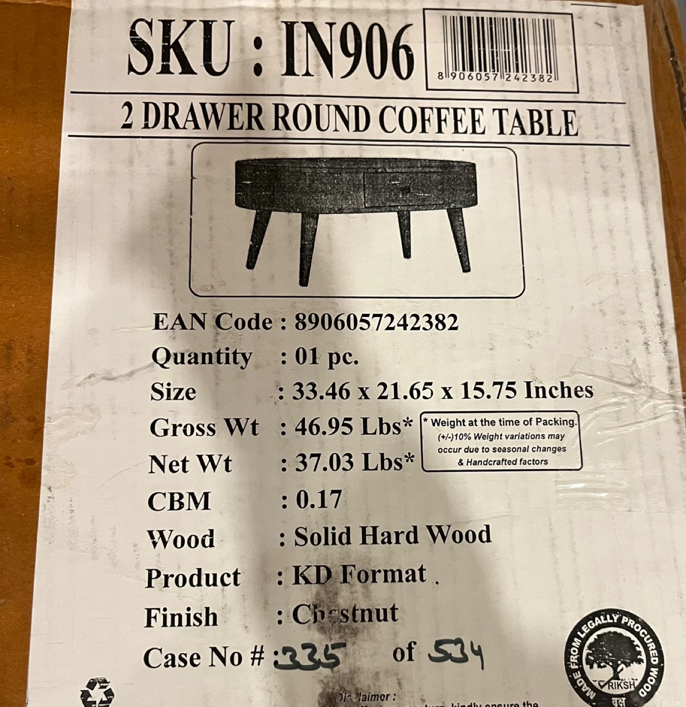 Selling a lovely Loon Peak Jayonni coffee table! It features a beautiful brown finish and includes two drawers for convenient storage. The table's dimensions are 33.46 x 21.65 x 15.75 inches. The wood is solid hardwood with a chestnut finish. This stylish piece would be a great addition to any living space!