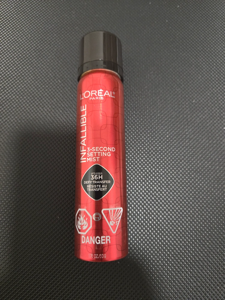 Selling a L'Oreal Paris Infallible 3-Second Setting Mist. It is designed to defy transfer for up to 36 hours. The container has 1.76 oz/50g of product.