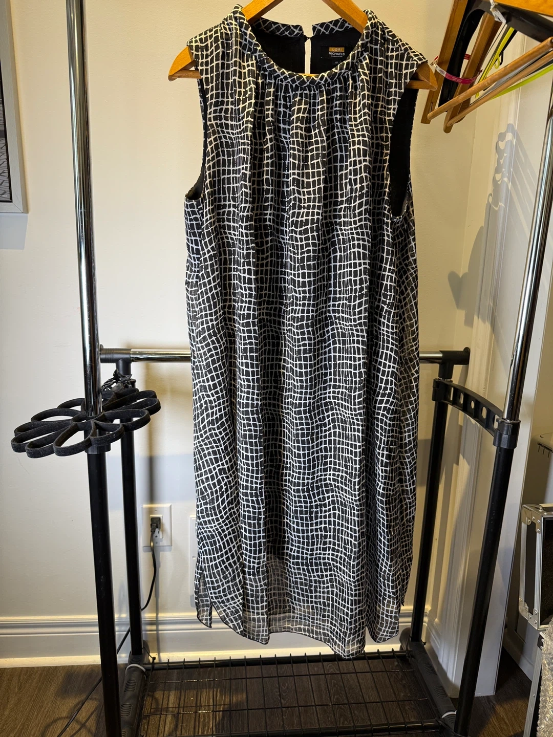 15Selling a Lori Michaels Collection dress in size 1X. It features a stylish black and white pattern. Perfect for any occasion!