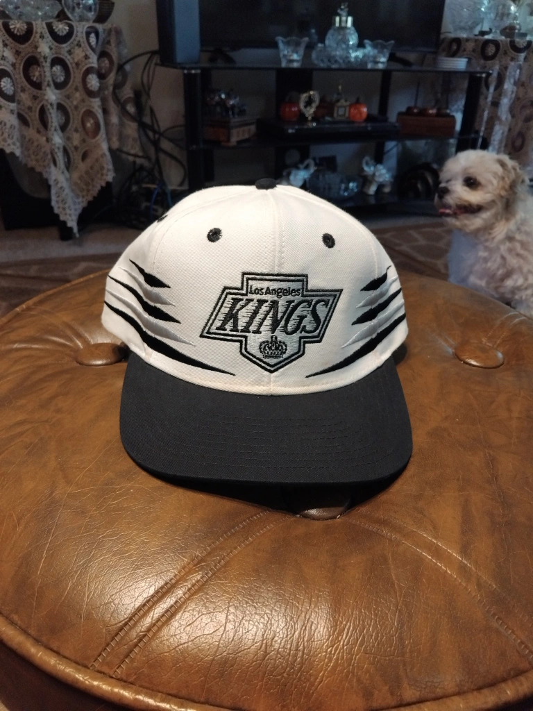 Selling a Los Angeles Kings hockey hat from Vintage Hockey! The hat is white and black with the Kings logo on the front