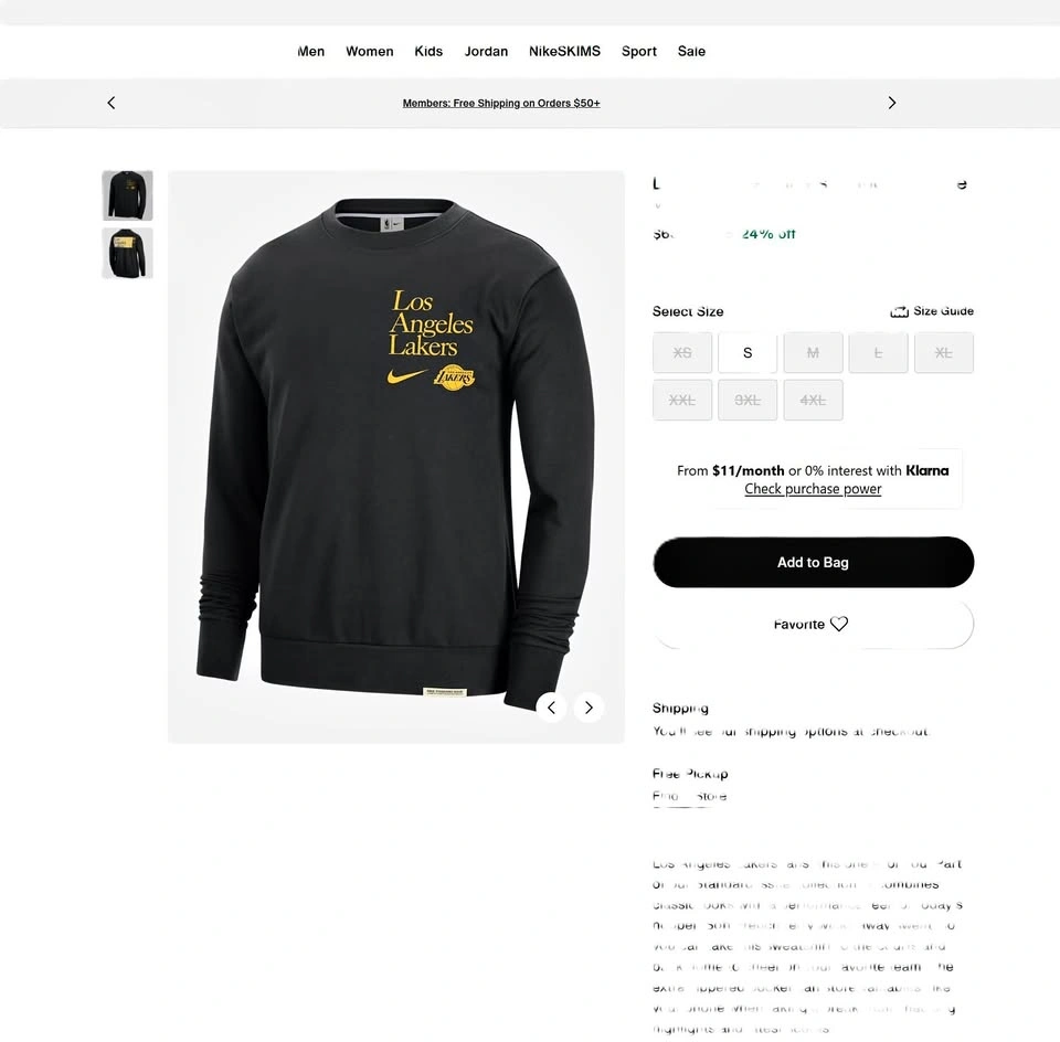 68Los Angeles Lakers Standard Issue Men's Nike Dri-FIT NBA Crew-Neck Sweatshirt size XL for sale. New without tags (US import). Asking $40. If the ad is up it's available. Check out my other listings.