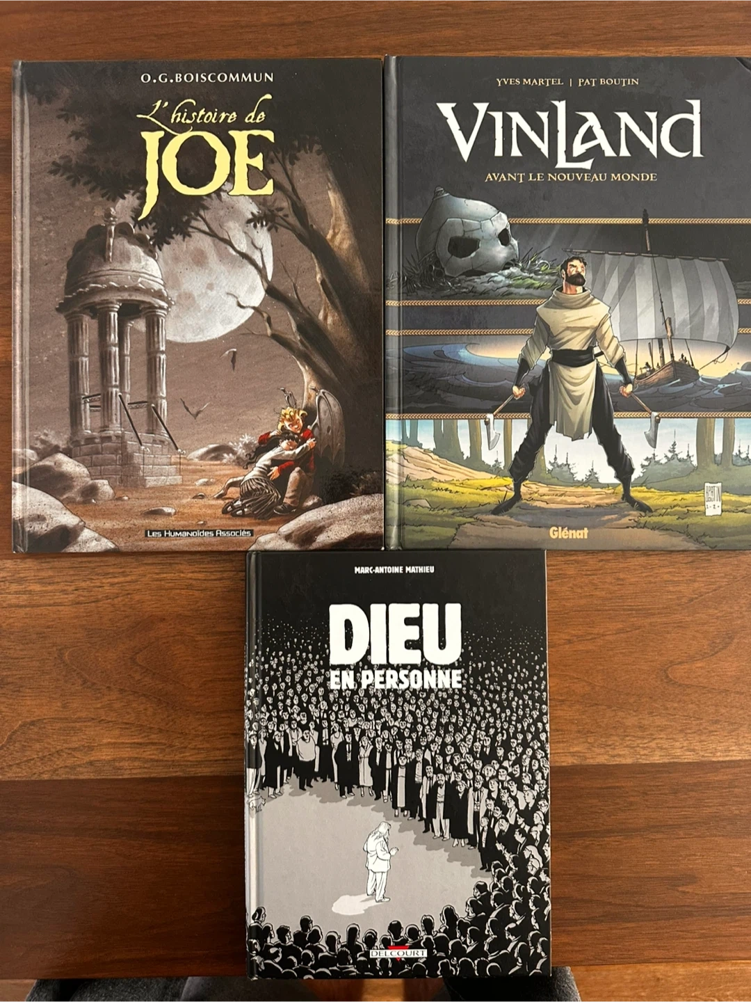 15Je vends un lot de trois bandes dessinées québécoises en excellent état: - L'histoire de Joe par O.G. Boiscommun - Vinland par Yves Martel et Pat Boutin - Dieu en personne par Marc-Antoine Mathieu Idéal pour les amateurs de BD québécoise