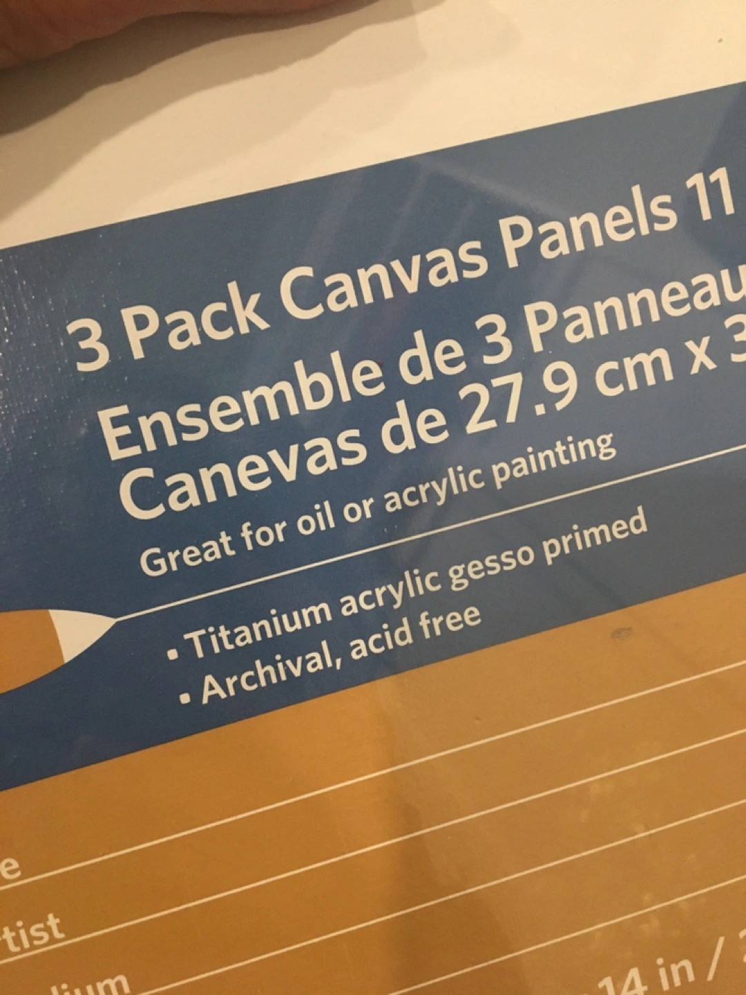 34Selling lot of Artist's Loft Basics canvas panels. These are great for oil or acrylic painting and are titanium acrylic gesso primed and archival acid-free. Each canvas panel measures 11 in x 14 in / 27.9 cm x 35.5 cm. Each pack of 3 was 6.99 each