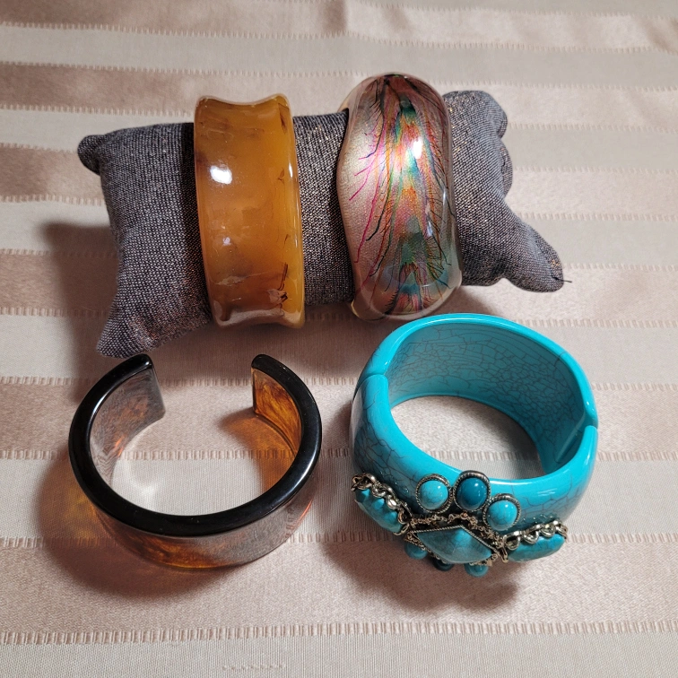 55Lot of 4 Beautiful Vintage Bracelets selling all 4 together pleaee see all pictures Please See all my Other Listings, Bundle & Save for a Better Deal! Located in Bradford, May be able to Meet, Shipping Offered at Buyers Expense, Please contact me for more Info & to make arrangements, sorry no holds without an ET, Thank you so much for Looking!