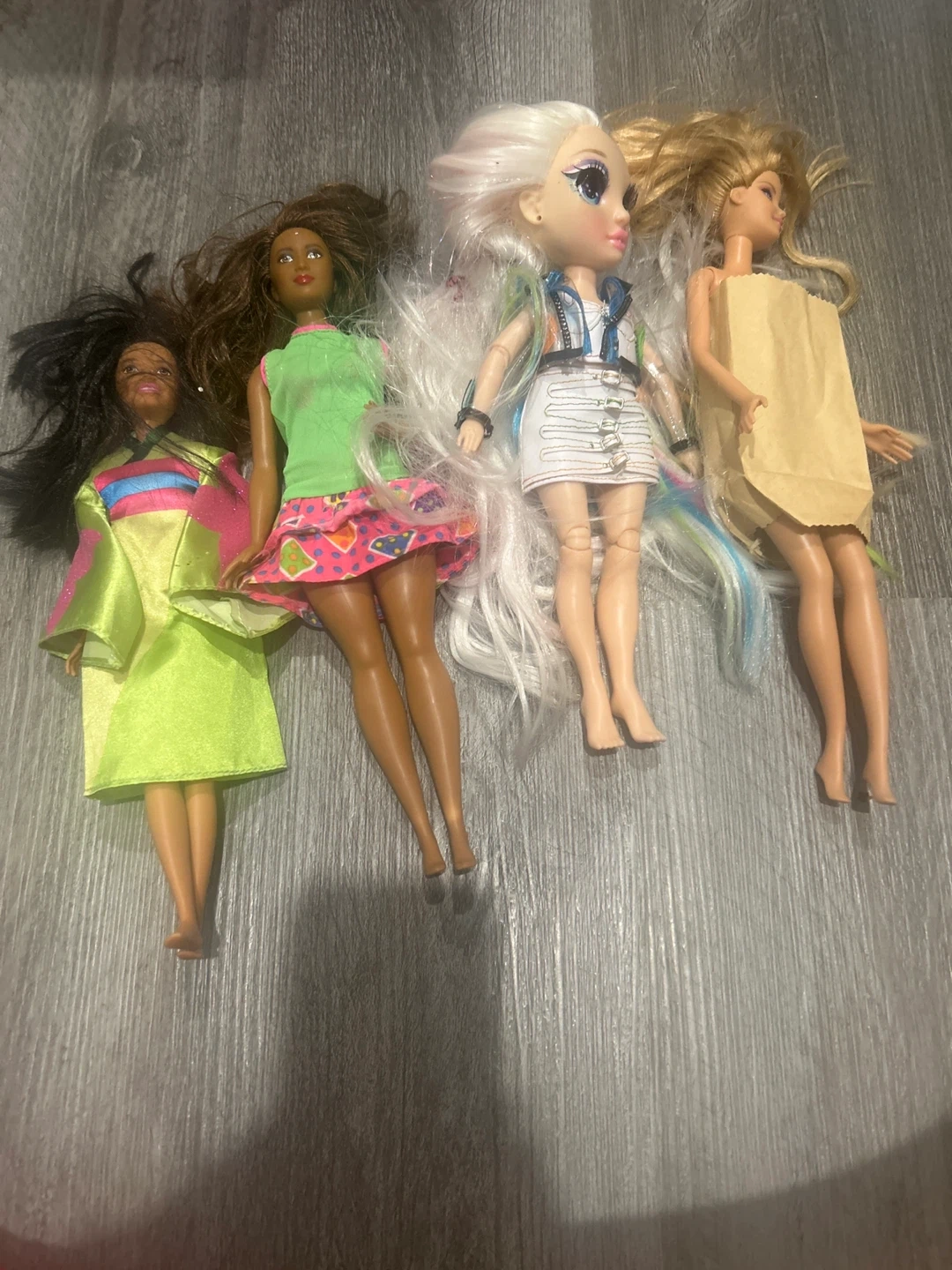 Selling a lot of 4 dolls! Includes a mix of Barbie dolls and a Rainbow High doll. Perfect for collectors or kids who love playing with dolls