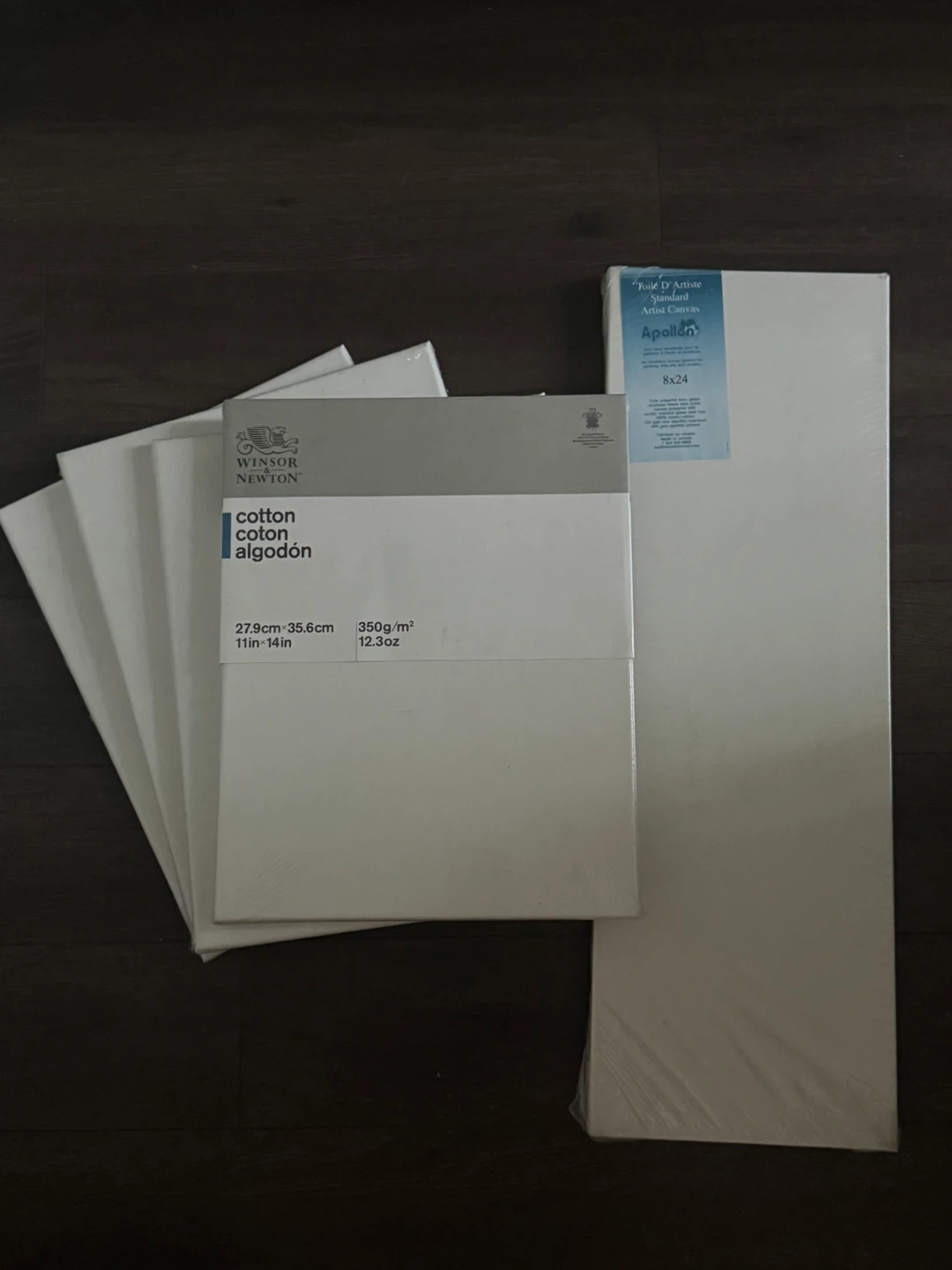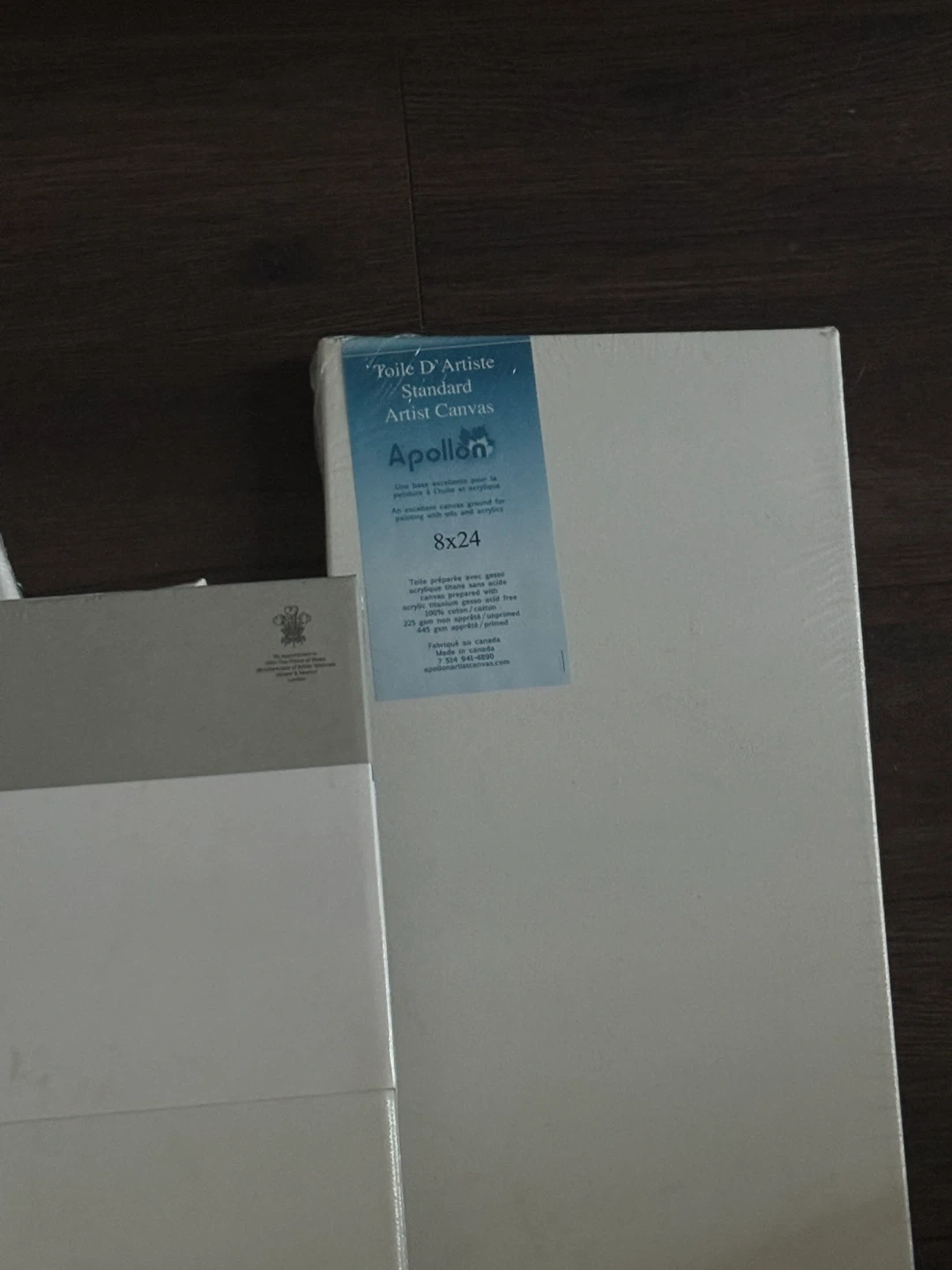 Price is for all 5. Still in its plastic wrap Selling a few artist canvases! There's an Apollon "Toile D'Artiste Standard Artist Canvas" that's 8x24 inches, and some Winsor & Newton cotton canvases that are 11x14 inches (27.9cm x 35.6cm). Great for painting with oils and acrylics