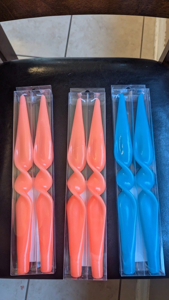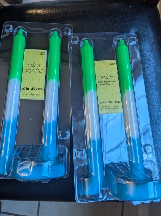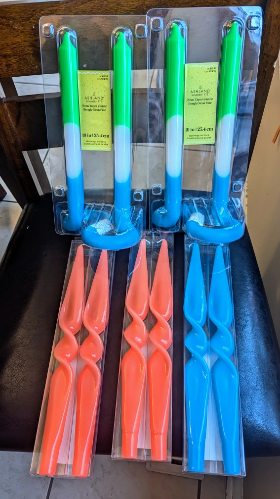 28Brand new Candle Lot. 3 packages of 2 unscented neon taper candles 2 packages of neon taper candles