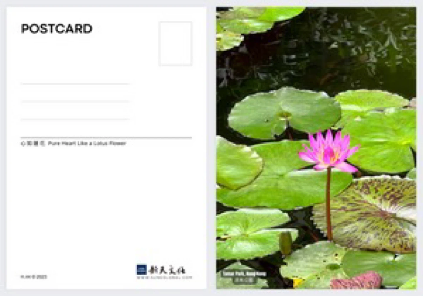 15A postcard featuring a beautiful lotus flower in a pond setting 心如蓮花 Lotus - 明信片
