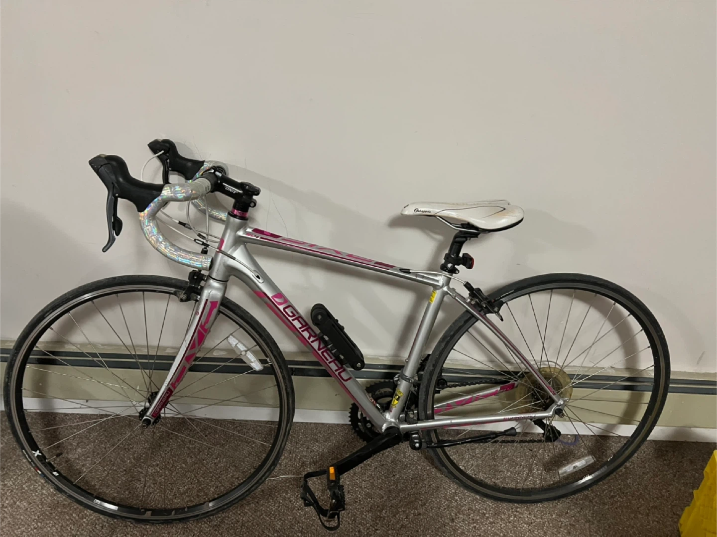 10Selling a Louis Garneau bike in silver and pink. It's in good condition and ready to ride!