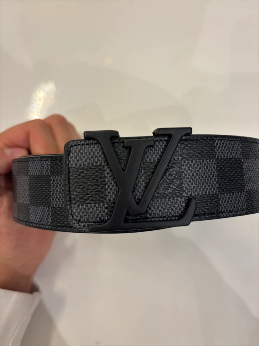 Selling a Louis Vuitton belt in Damier Graphite. - Size: 40/100 - Features the iconic LV logo buckle - Stylish and in good condition