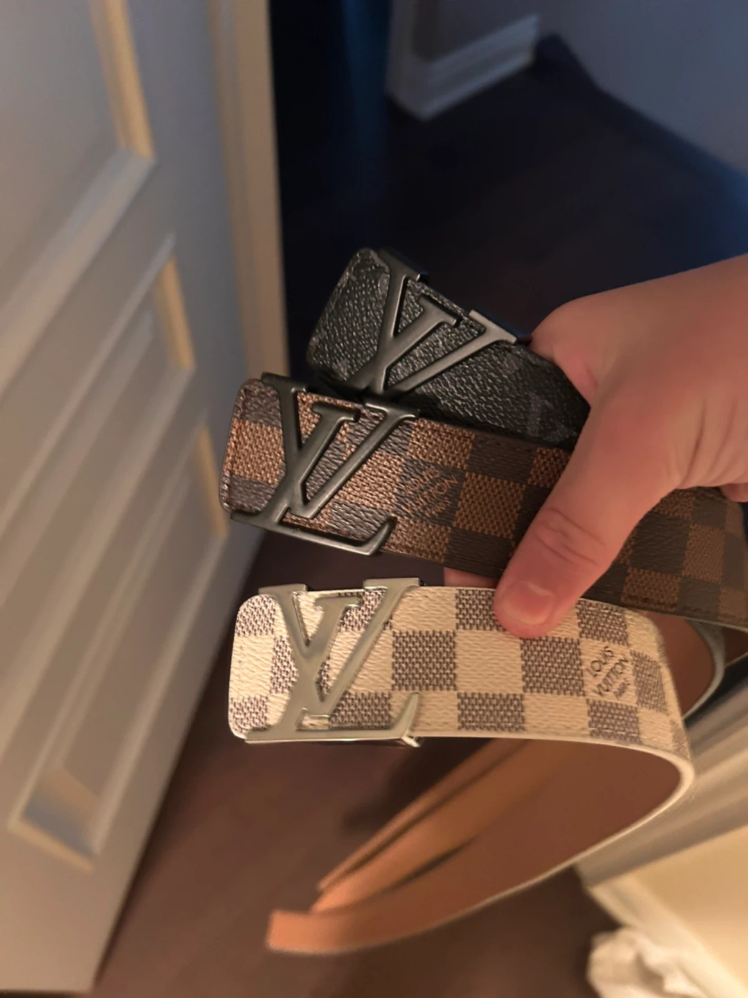 Also got as a gift and never wore them and can cut you a deal all 3 of 300 or 2 for 250 Selling a few Louis Vuitton belts. They feature the iconic LV logo buckle and come in the Damier Ebene (brown checkered) and Damier Graphite (black checkered) patterns. Great for adding a touch of luxury to any outfit!