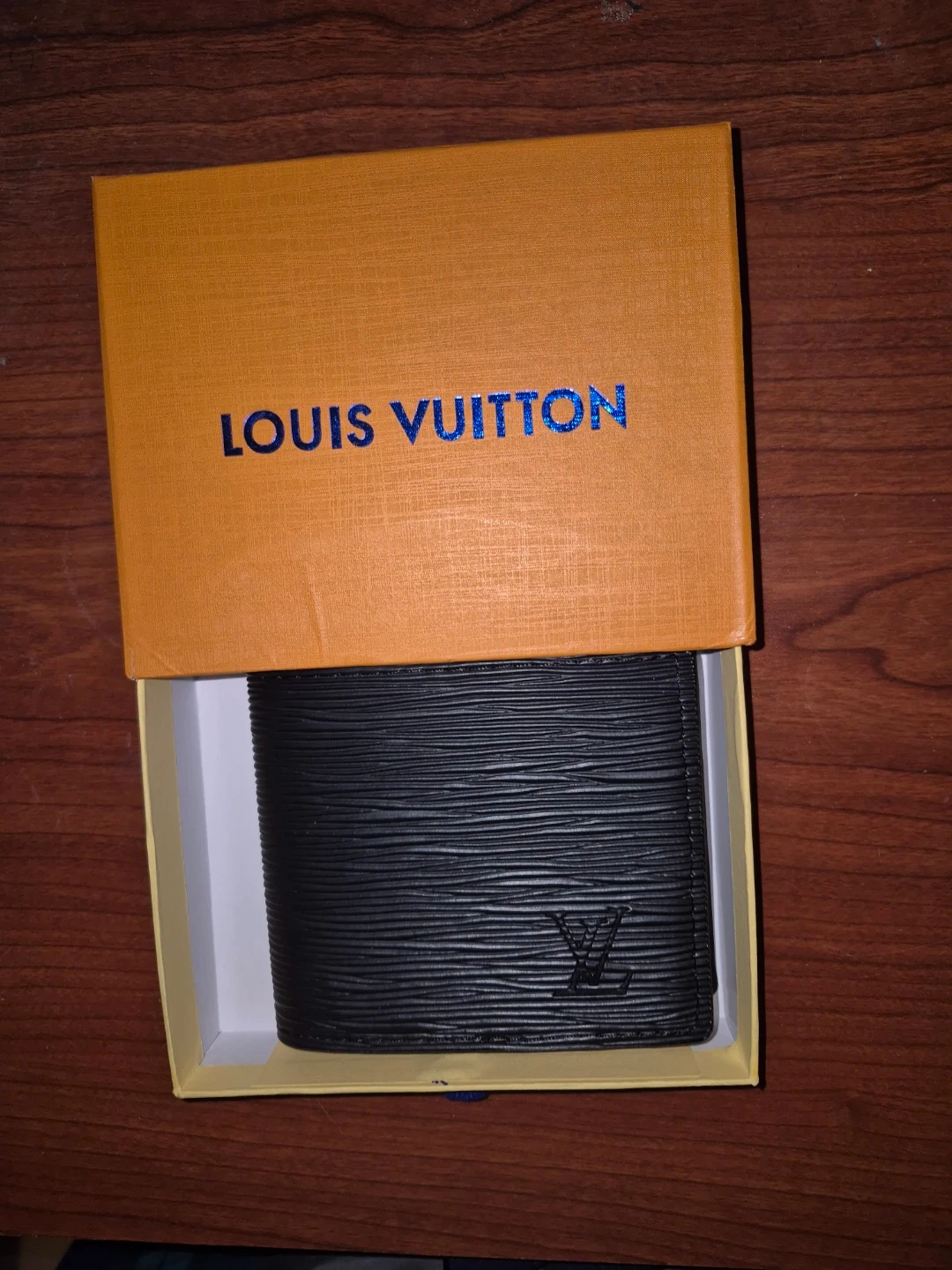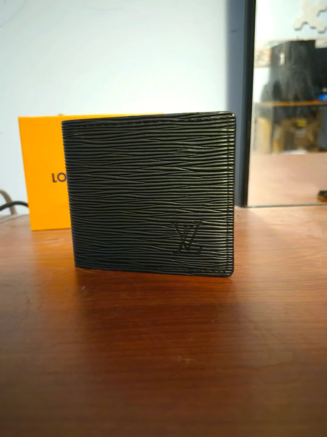 0Selling a Louis Vuitton wallet in black Epi leather. It's in great condition and comes with the original box. A stylish and durable accessory!