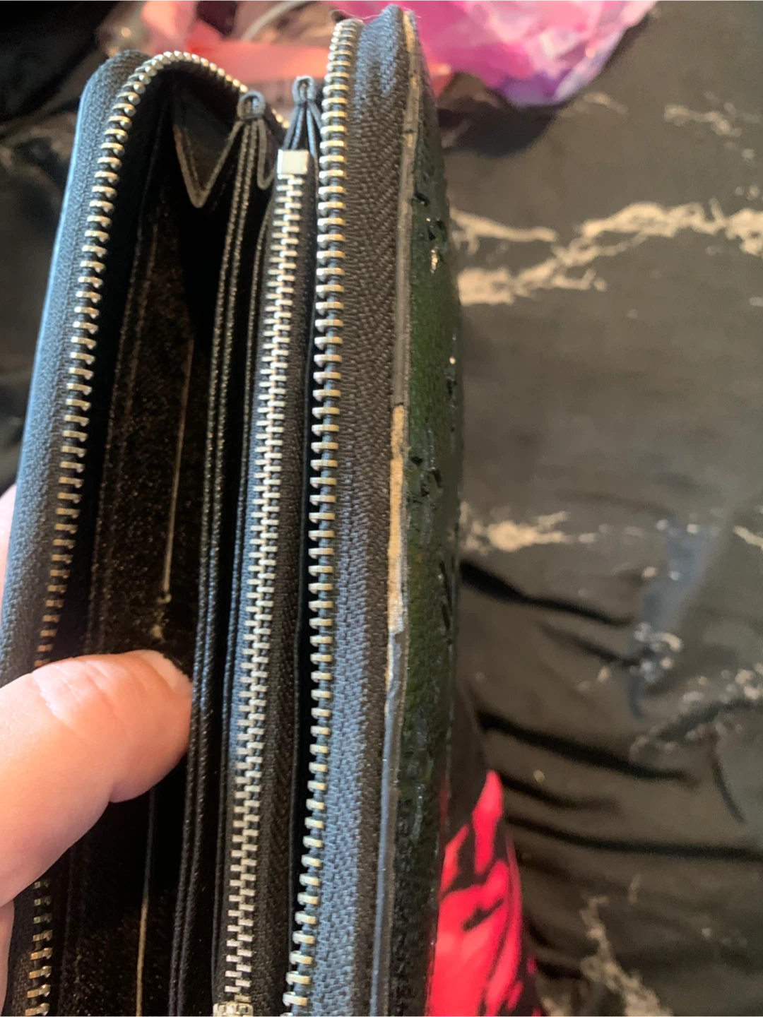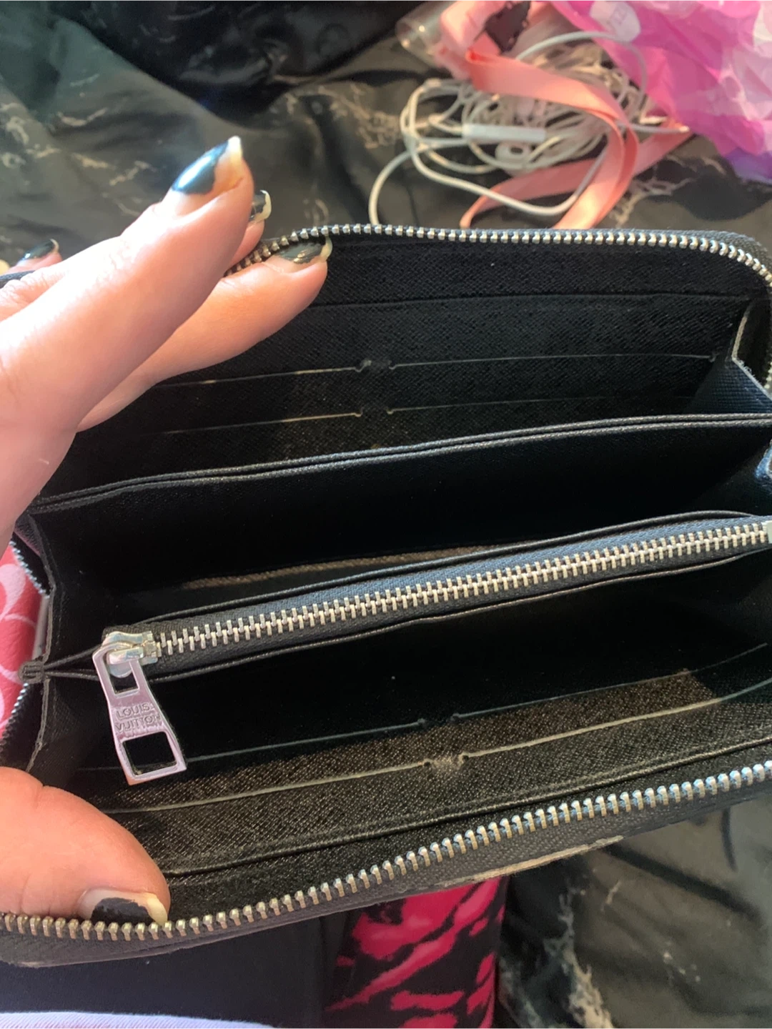 Selling a black Louis Vuitton wallet. It has a zipper closure and lots of compartments inside to keep everything organized. It's in good used condition!