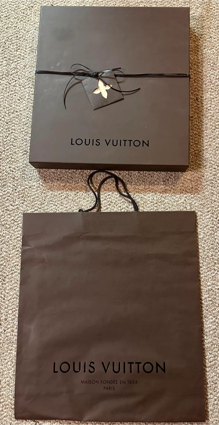 Selling a Louis Vuitton box and bag. The box includes the original tissue paper, COA card and dust bag. Great for storing your LV items or gifting! Bag 21.5X19 and box 18.5X17 .