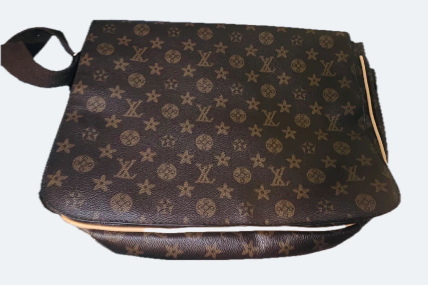 10Selling a “Louis Vuitton messenger bag” with a brown monogram pattern. It's in good condition and has a long, adjustable strap. Perfect for carrying your essentials around town!