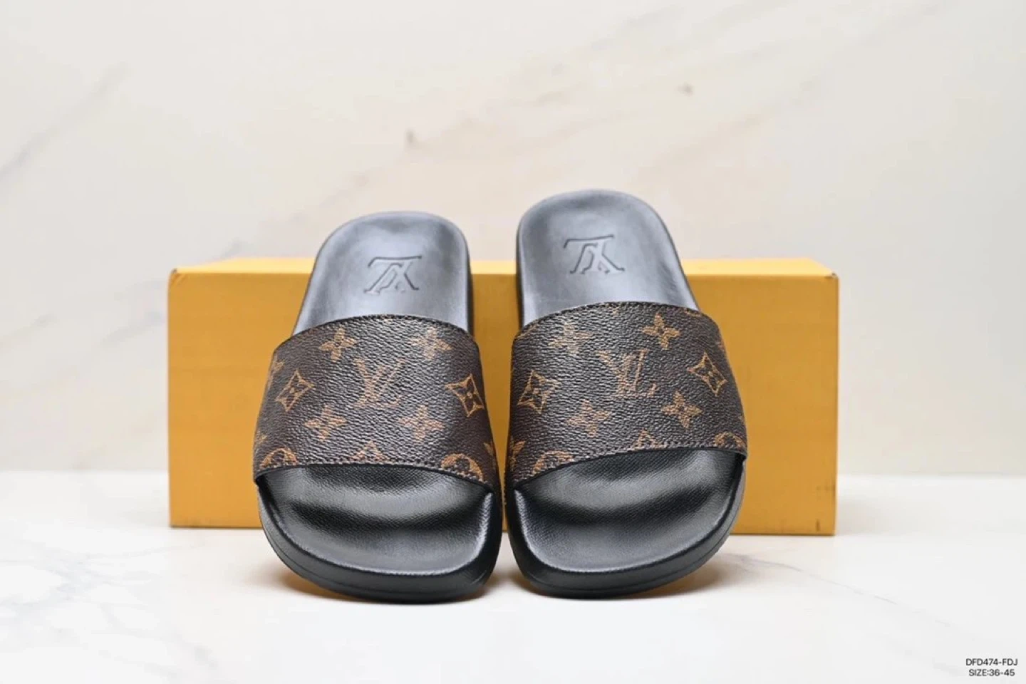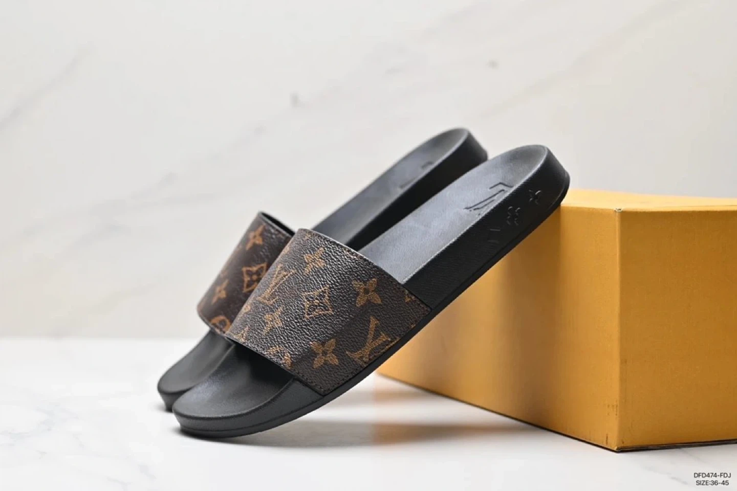 15Step into effortless luxury with these Louis Vuitton slides, featuring a sophisticated blend of gold, brown, and black tones. Crafted with premium calf leather and signature LV accents, these slides combine comfort with iconic style. The adjustable strap and cushioned footbed ensure a perfect fit for all-day wear, while the sleek color palette adds a touch of modern elegance to any casual or upscale outfit. Ideal for lounging, beach days, or making a statement on the go, these slides embody Louis Vuitton’s hallmark of timeless design and quality craftsmanship.