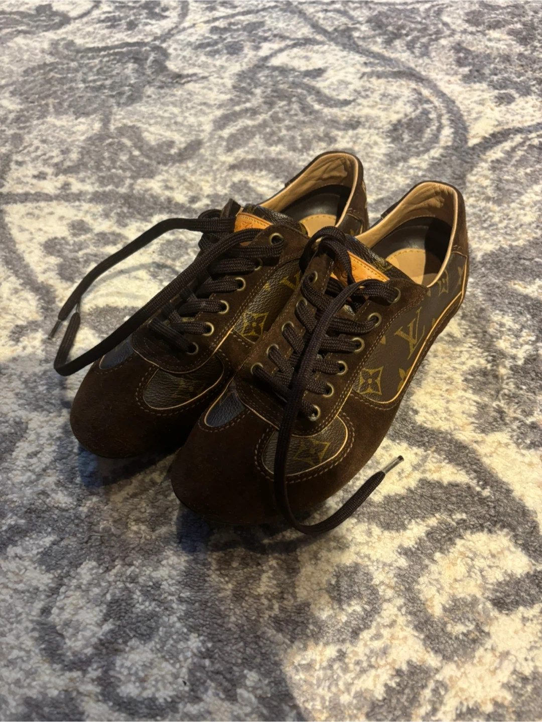 10Selling a pair of Louis Vuitton sneakers in a lovely brown suede. They feature the classic LV monogram pattern. These are in great condition and worn twice at most.