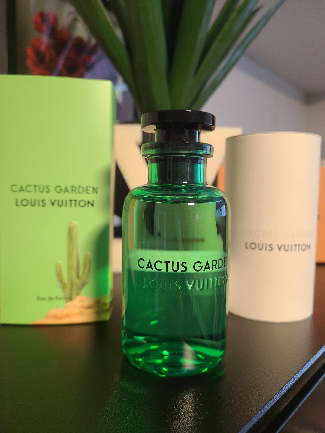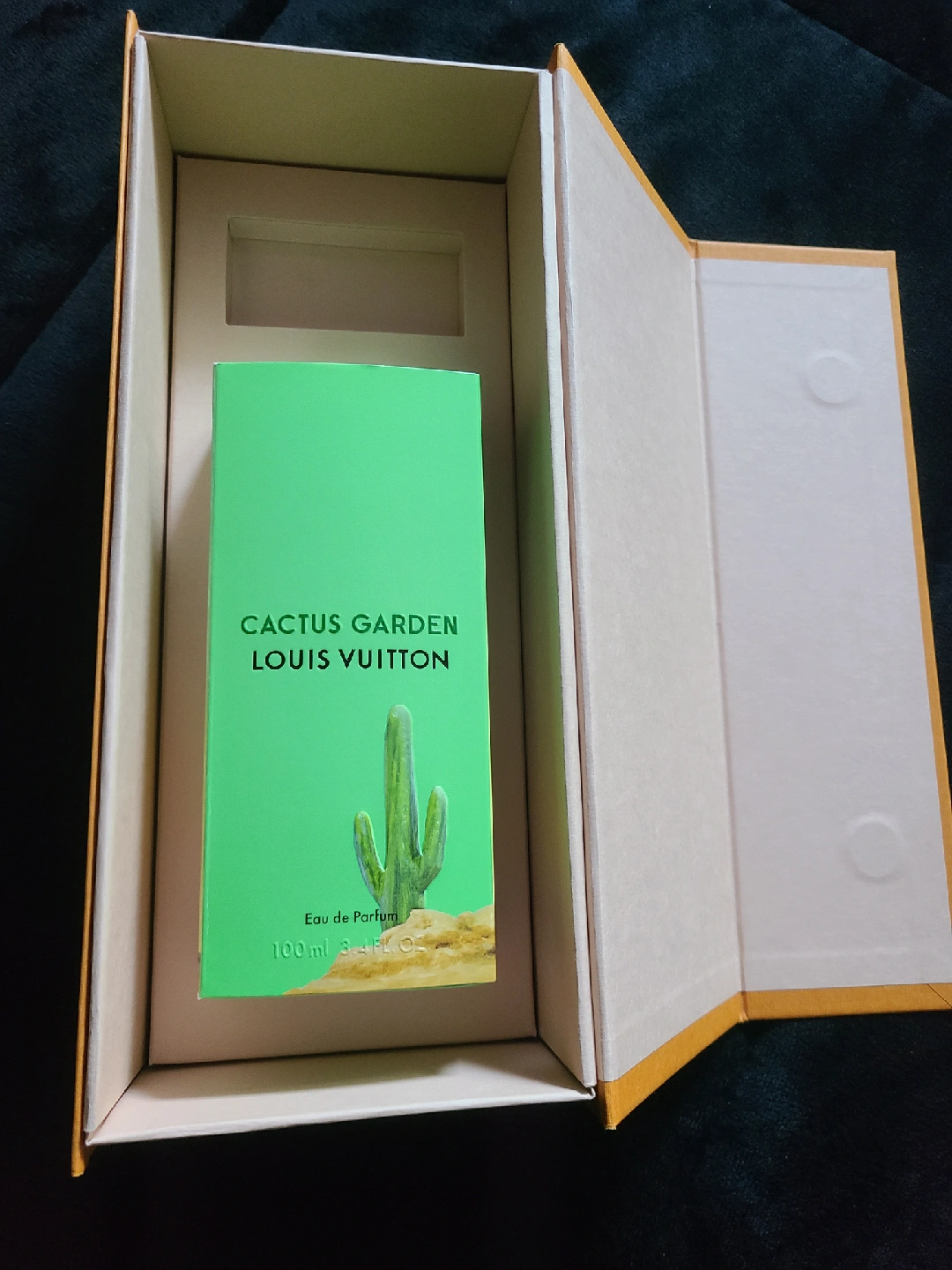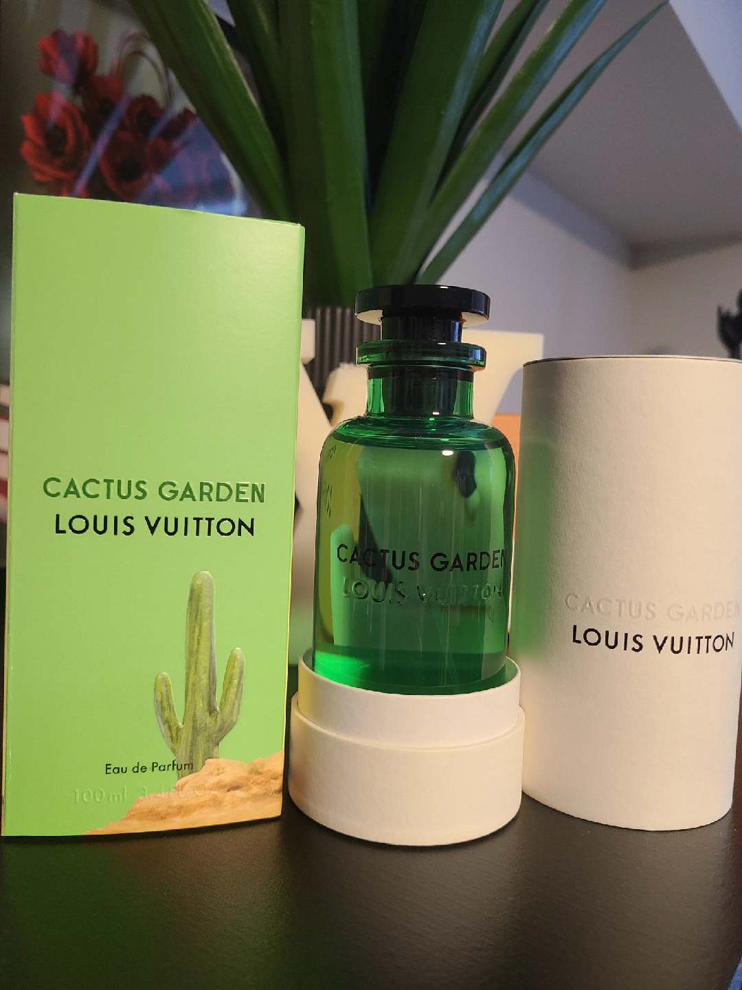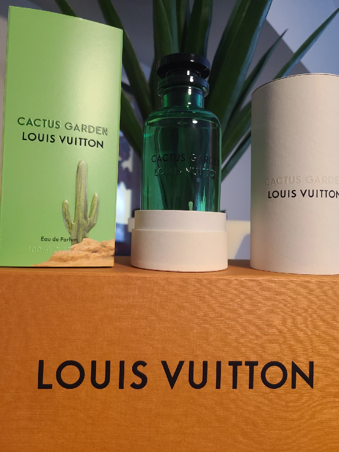 Selling a bottle of Louis Vuitton's Cactus Garden Eau de Parfum. It's a 100ml bottle and comes with the original box. This fragrance is perfect for anyone who loves fresh, vibrant scents. Sprayed only once to test! Received as a gift. No receipt! Very rare and HTF! Serious buyers only!