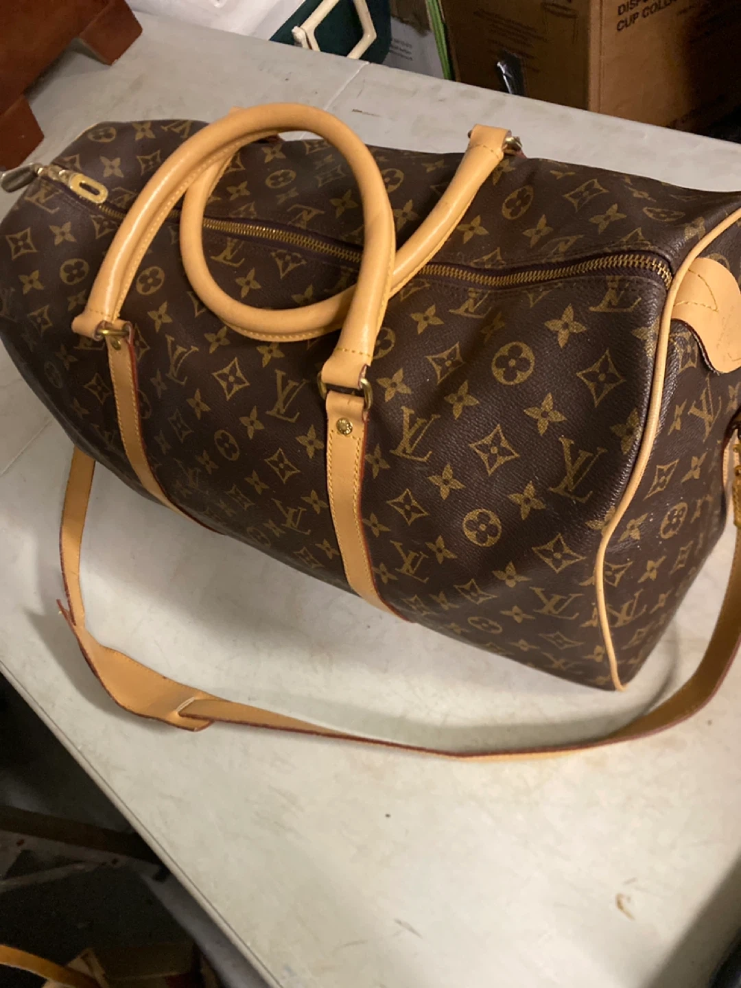 31Selling a classic reproduction Louis Vuitton duffle bag in the iconic monogram canvas. It's a great bag for travel or everyday use. In good condition!