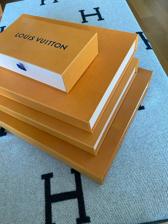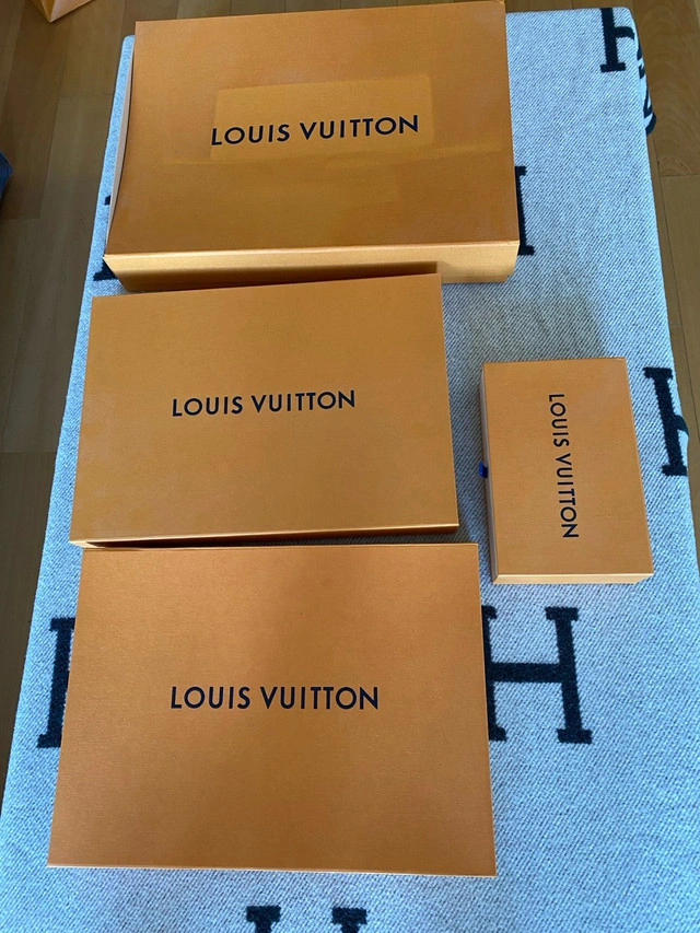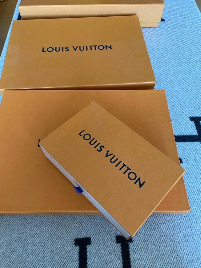 I have a collection of authentic Louis Vuitton shopping boxes available, perfect for collectors or those looking to add a touch of luxury to their storage solutions. These boxes vary in size and are in good condition, showing minimal signs of handling. A great way to keep your cherished items or add a sophisticated touch to your décor! If this ad is up, it's still available! Don't miss out on the chance to give these lovely LV boxes a new home. They're waiting to bring a bit of LV magic to your space. Sell from $10-25 each depending on different size.