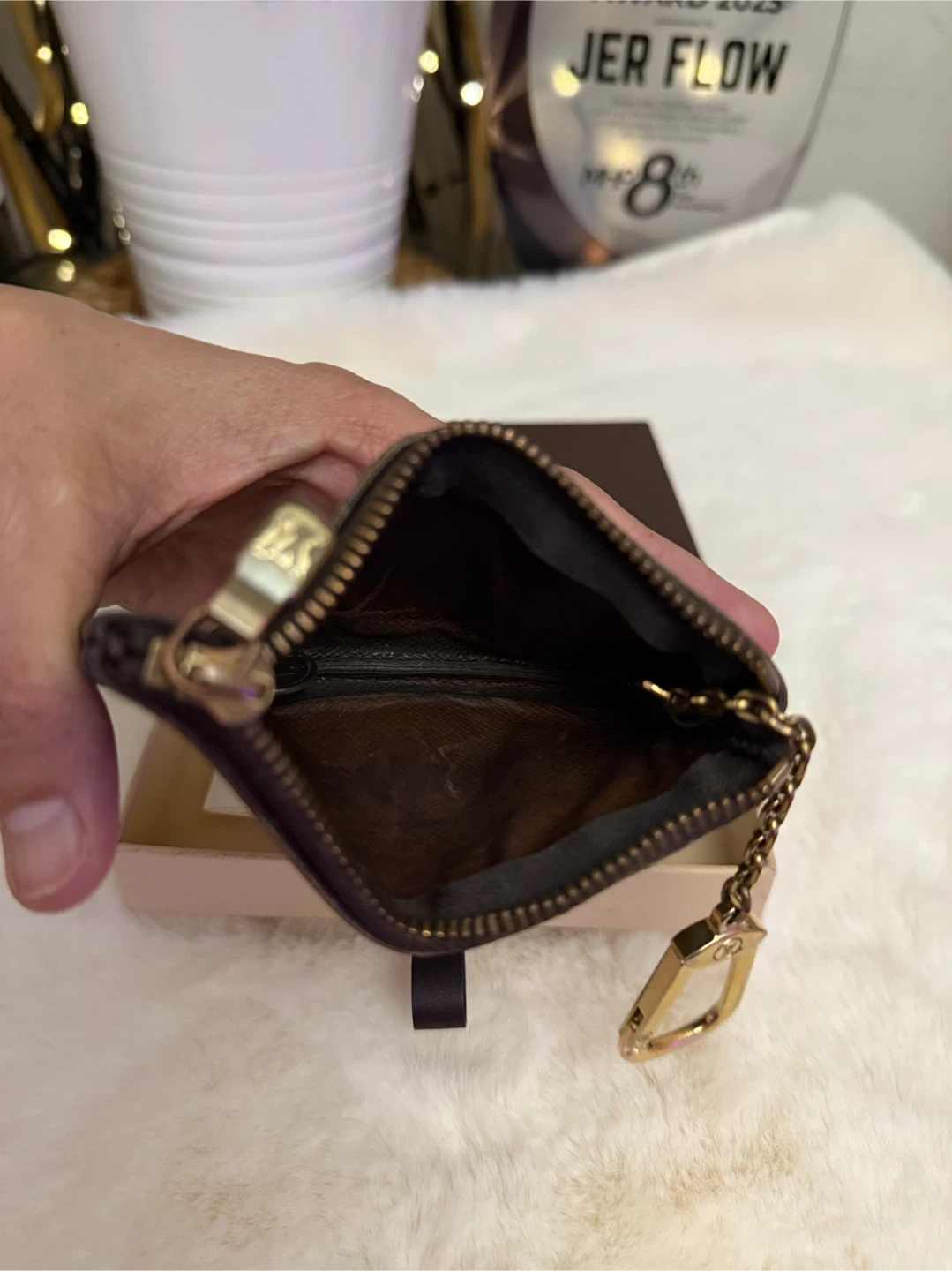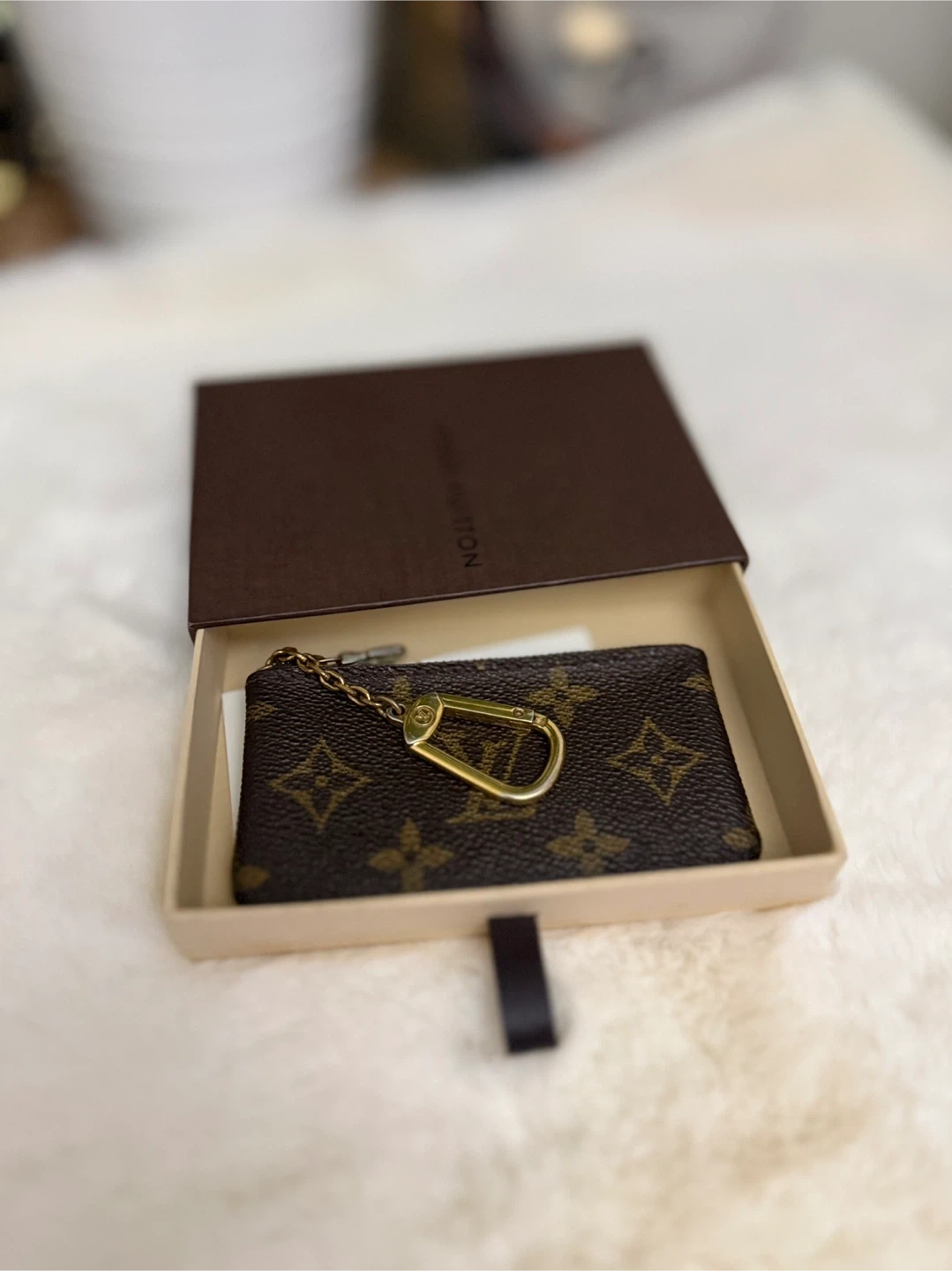 68Selling a Louis Vuitton Monogram Key Pouch. It's in good condition and comes with the box. Perfect for keeping your keys.. There's a sign of usage such as small stain inside the purse.. see the last pic..