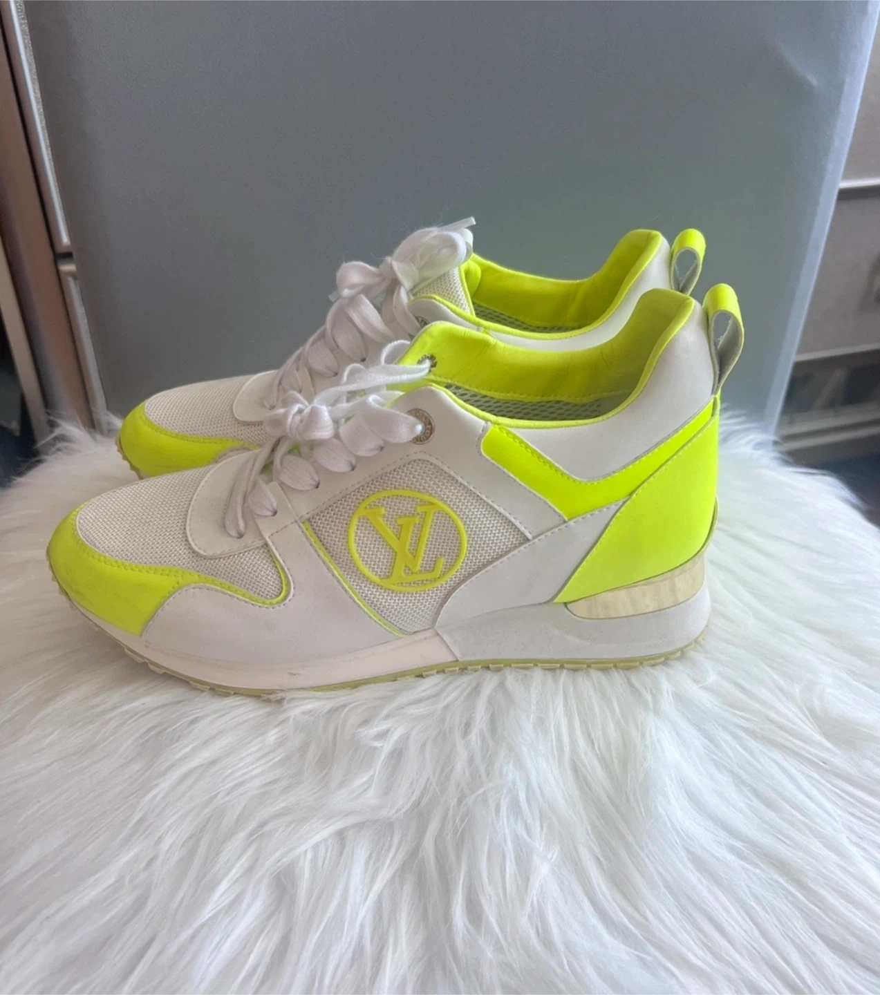 Selling a pair of Louis Vuitton Run Away Pulse sneakers in white and neon yellow! These stylish sneakers feature the iconic LV logo and are perfect for adding a pop of colour to your outfit. They are in great condition and ready for a new home Price matches authenticity