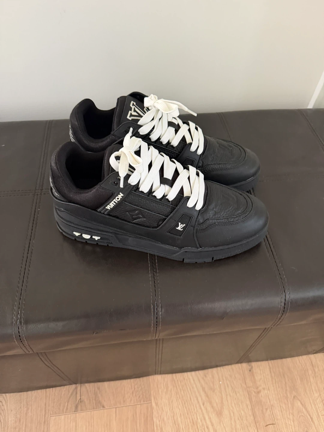 60These Louis Vuitton Trainer sneakers are in great condition! They are a stylish black colour and feature the iconic LV logo. Perfect for adding a touch of luxury to your everyday look Size 11 new