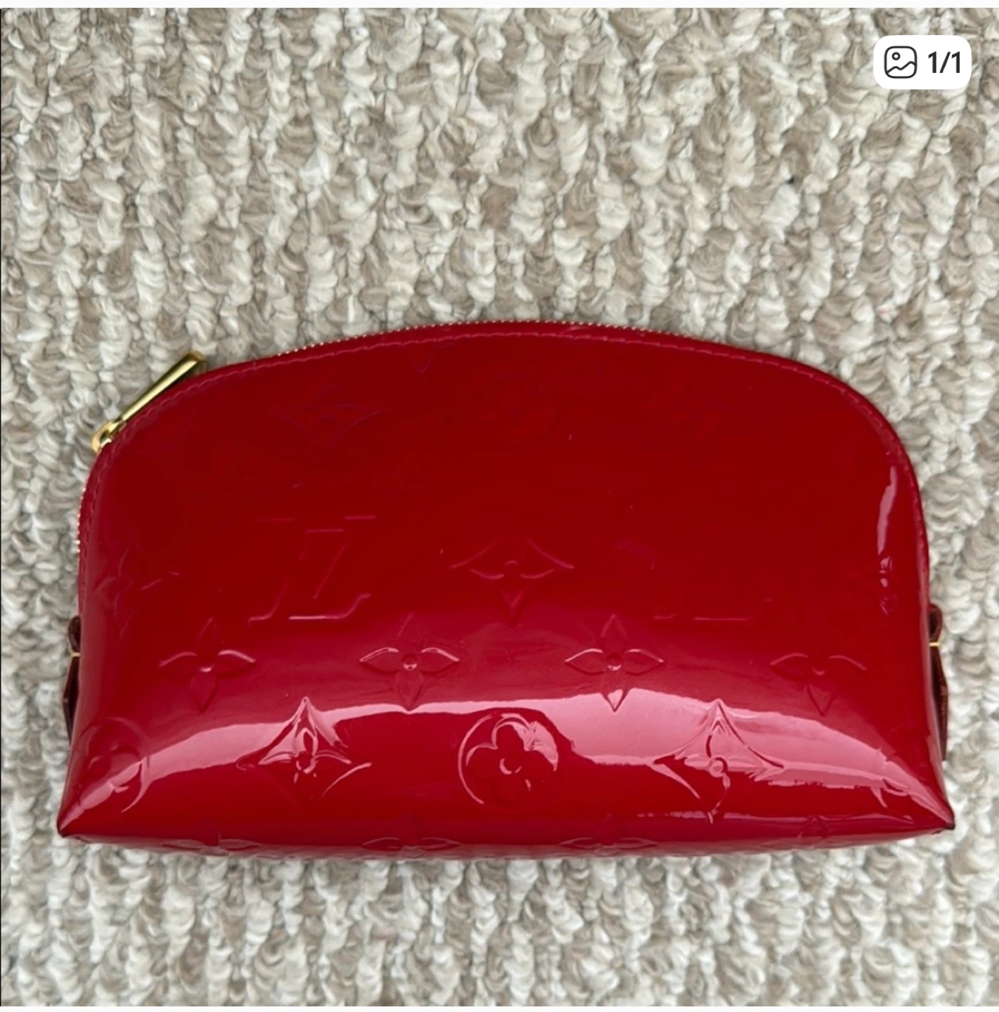 0A beautiful Louis Vuitton Vernis cosmetic pouch in a vibrant red! It's in great condition and perfect for keeping your essentials organized with a touch of luxury