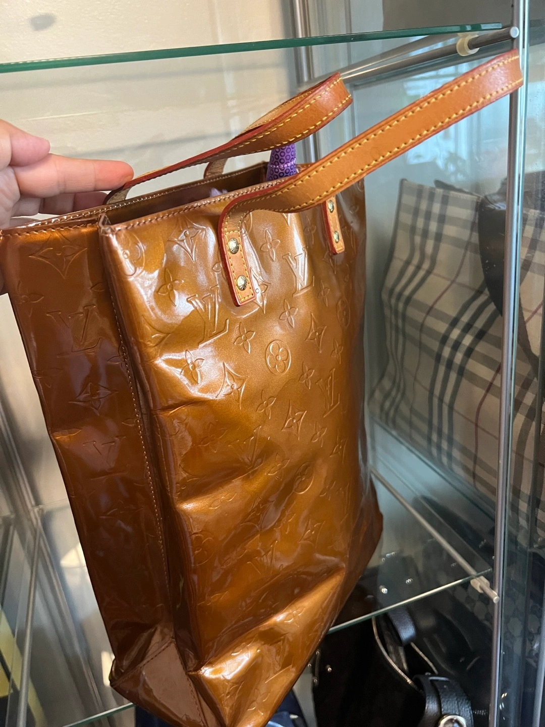 This is a Louis Vuitton Vernis Reade tote bag. It's in great condition and ready for a new home! The bag features the classic LV monogram pattern in a shiny vernis leather. Perfect for adding a touch of luxury to your everyday style