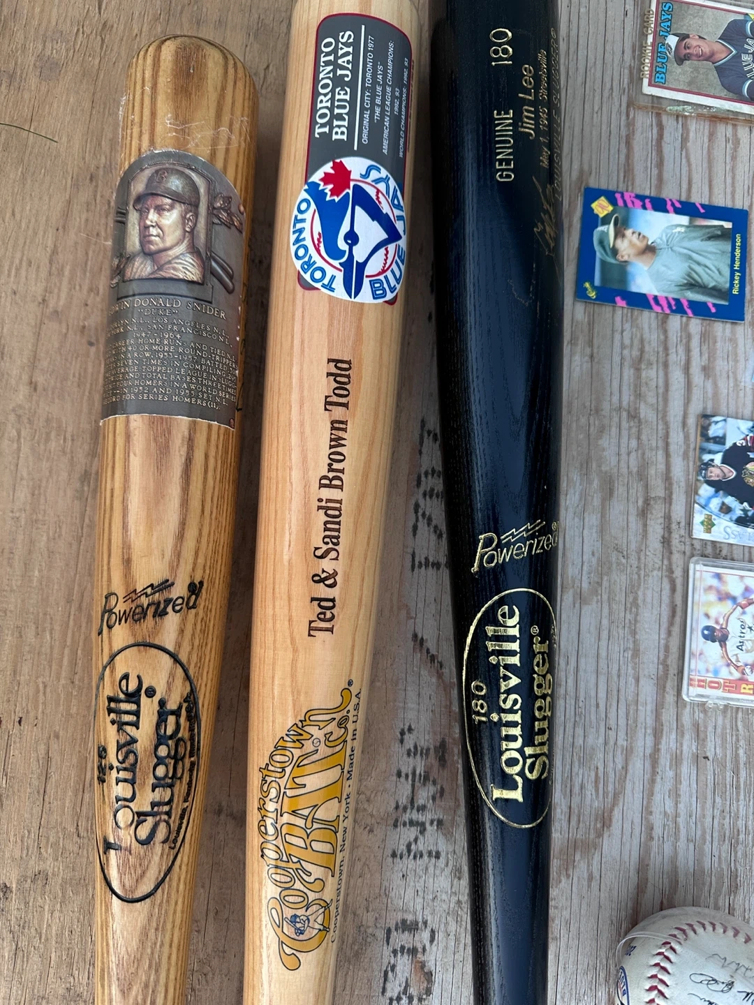 Selling a few Louisville Slugger baseball bats. One is a Toronto Blue Jays bat, another is an Edwin Donald Snider bat and the last is a Jim Lee bat. Great for collectors or anyone looking to up their game! OBO