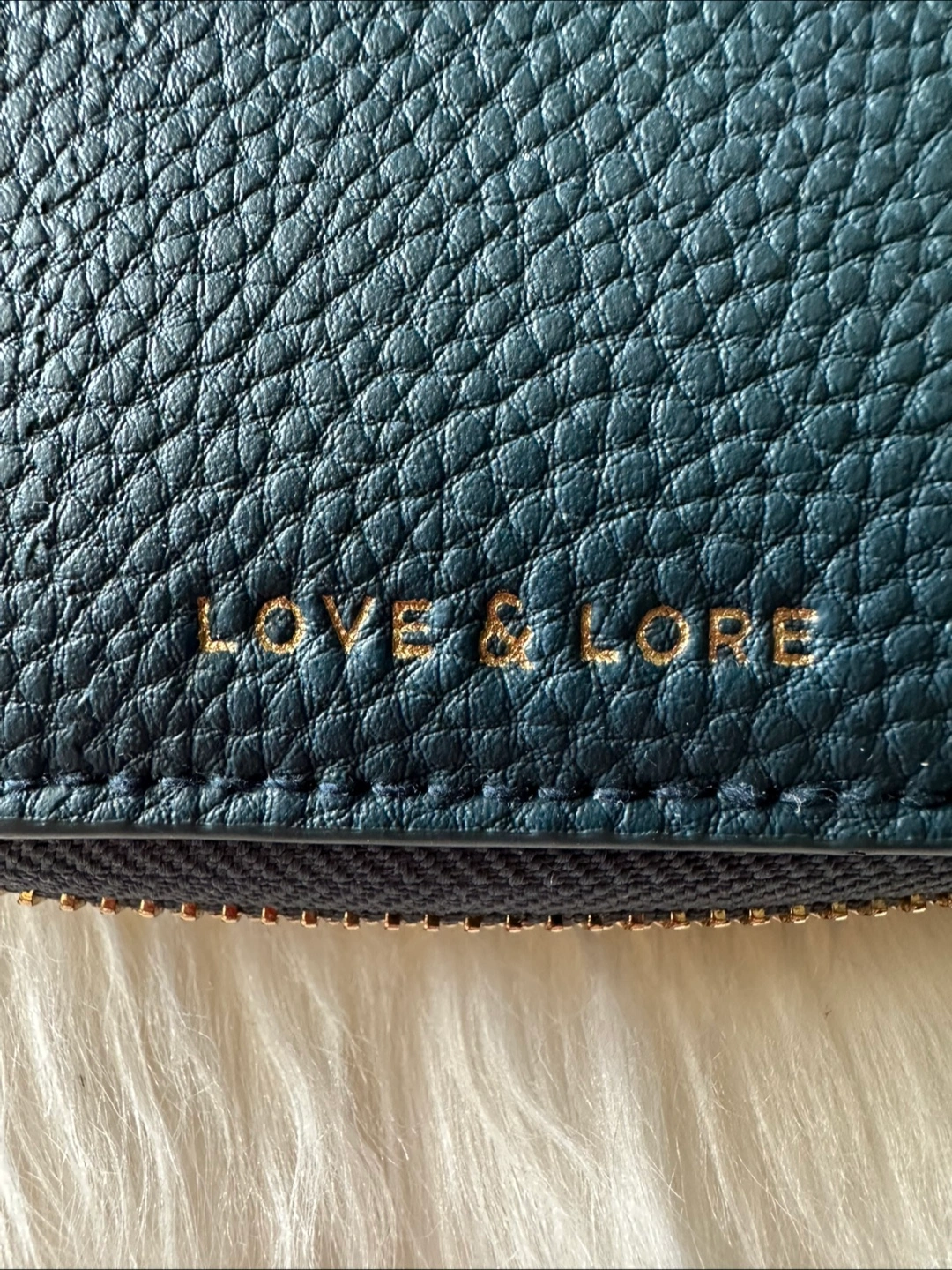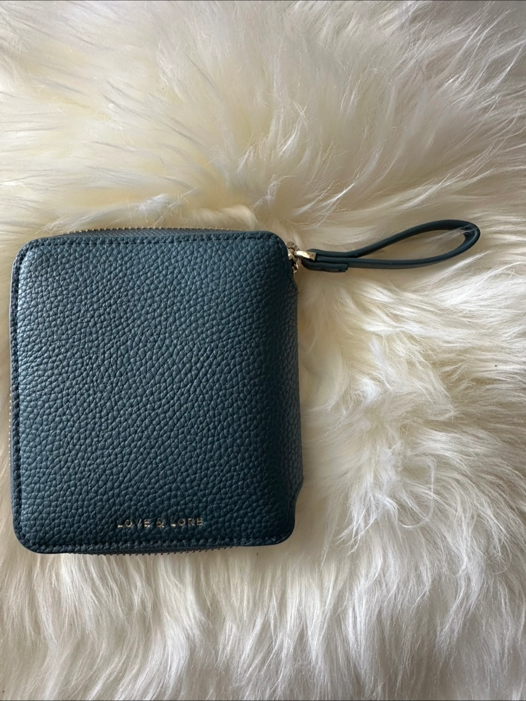 Compact zip around wallet. Excellent condition. Features multiple card slots and a zipper closure. Dark teal coloured faux leather. Small wristlet strap. Good things come in small packages, just like this Love & Lore Zipper Wallet. With its stylish, sophisticated design, this fashionable faux leather wallet is packed with plenty of features in petite form. This vegan leather wallet features a wraparound zip closure that opens to reveal 4 card slots, a slip pocket for cash and a button coin pouch. Small but mighty, this slip pocket wallet pairs waterborne vegan leather with sparkling gold hardware and a brushed twill lining derived from recycled materials for sustainable style. Embodying everyday elegance, Love & Lore’s chic zipper wallet is sure to elevate your accessory game. Pick-Up in Pickering (Brock & 401)