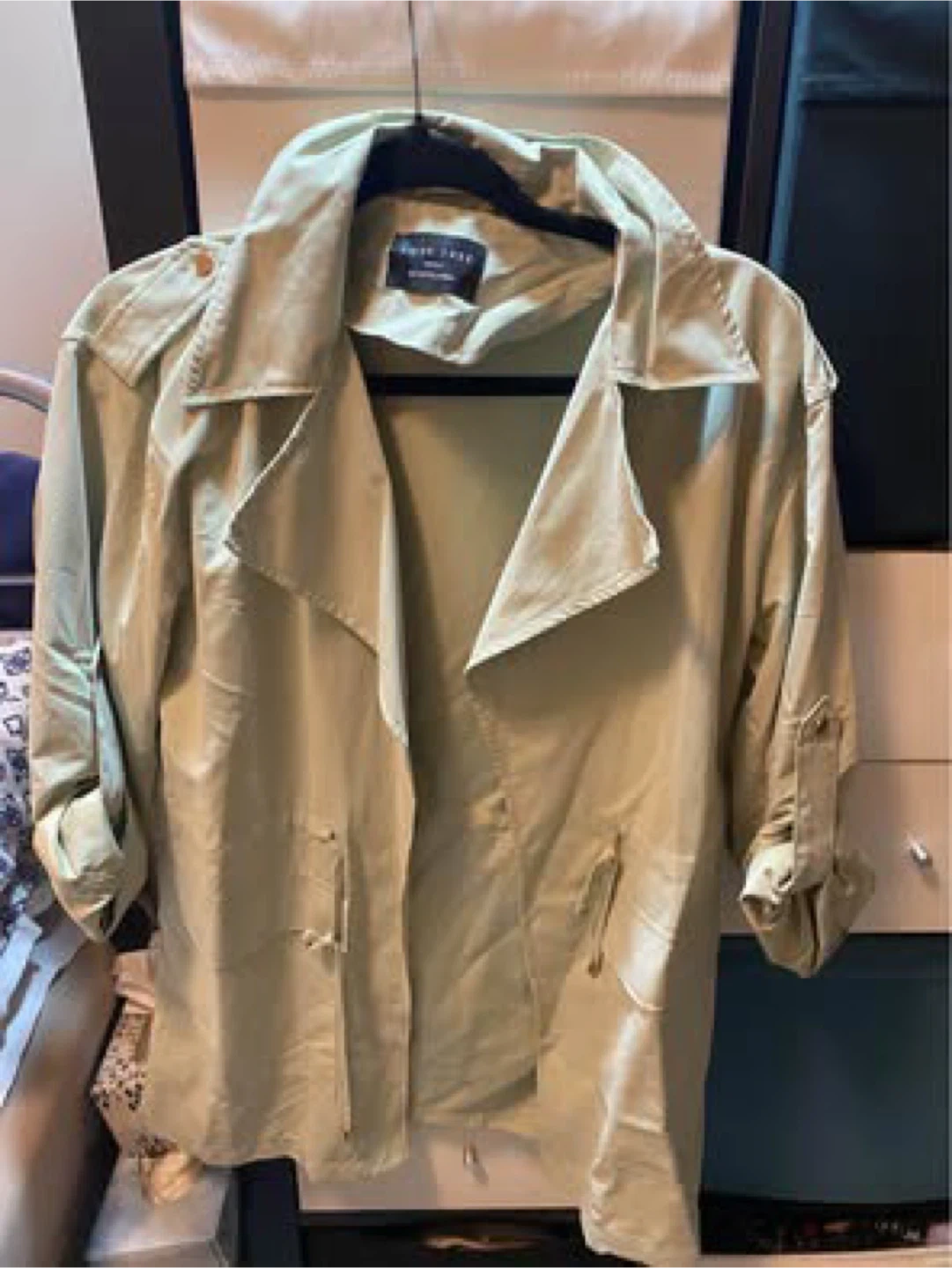 65Selling a Love Tree jacket in size small. It's a light green colour and made of 90% polyester and 10% nylon.
