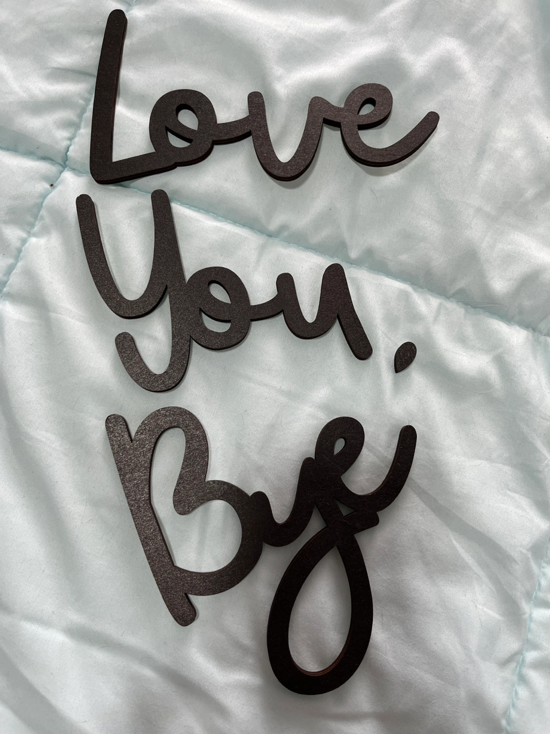 Cute 'Love You Bye' wall decor, perfect for adding a sweet touch to any room! It's in great condition and ready to find a new home