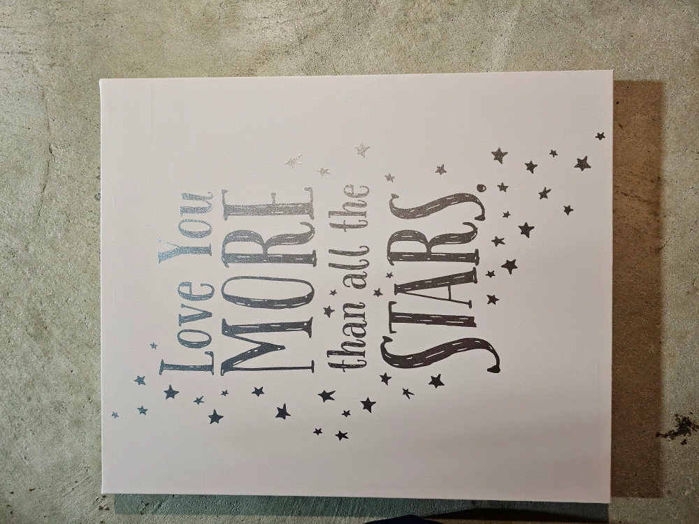 A sweet canvas print that says 'Love You More Than All the Stars'. Perfect for a nursery or child's room!