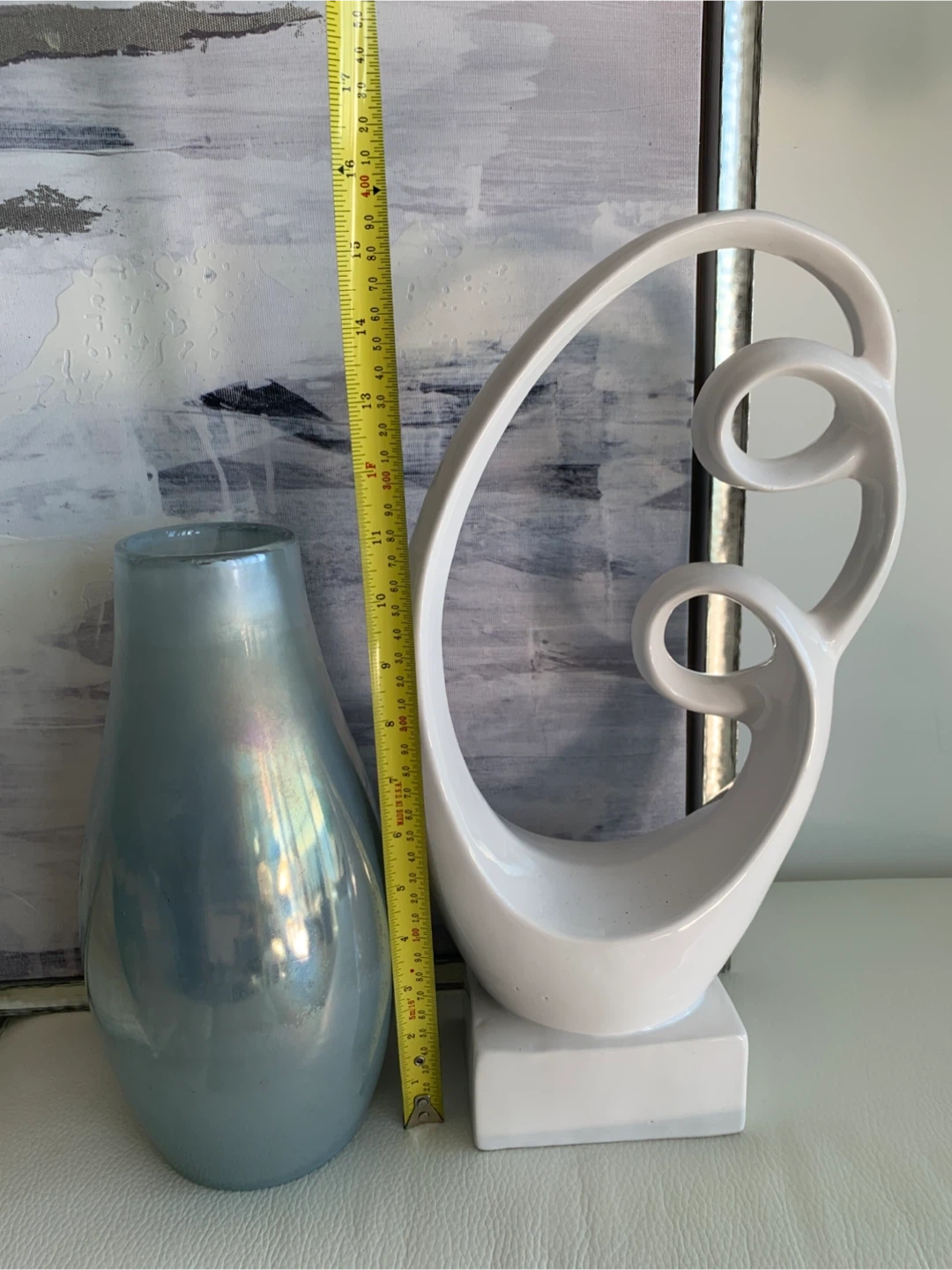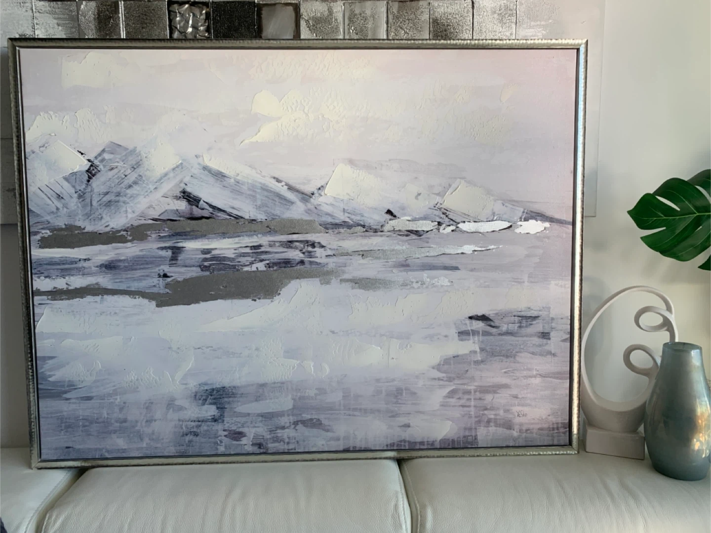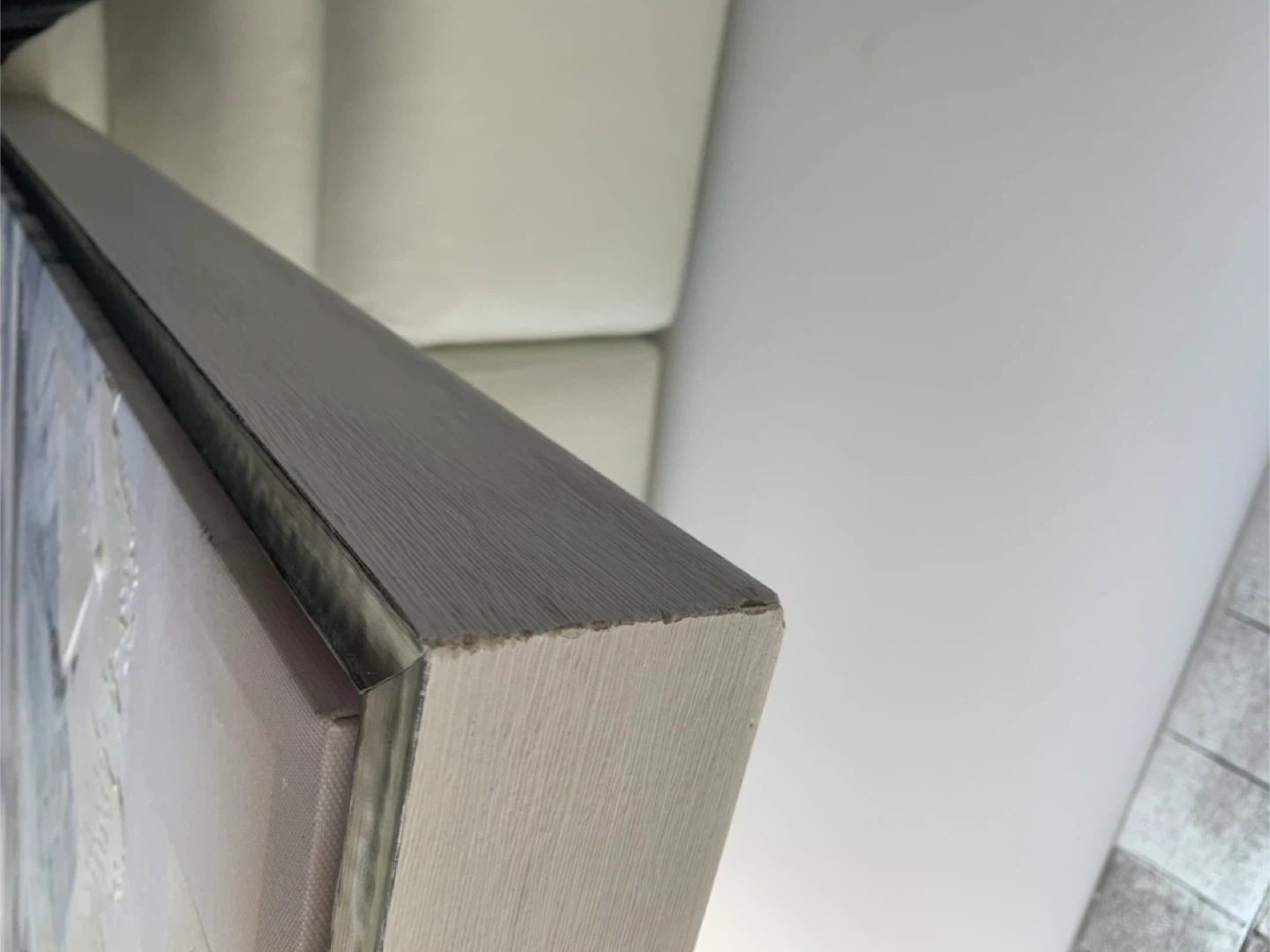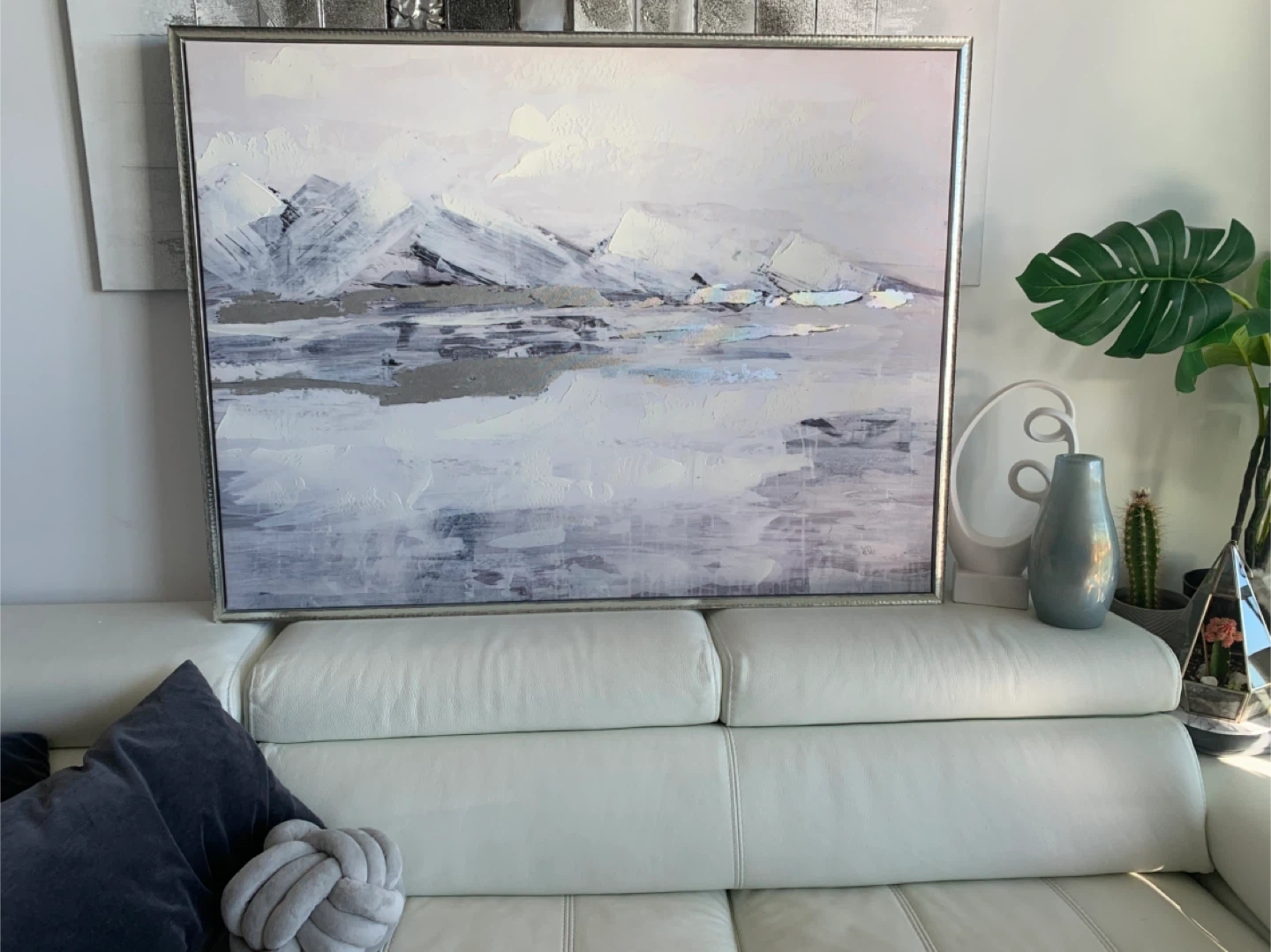 Price is firm. ✔️Cash & Pickup Only Please 📍Near Lake Shore Blvd W and Park Lawn. See Map on listing. 💛 Feel free to check out my other listings! Beautiful and tasteful large canvas painting frame from artist Yasko. Modern colours that will fit any decor and upscale it immediately. Colour scheme composed mostly of whites and greys. •The canvas painting condition is like new! •The wooded frame is in good used condition. Due to moving it, it now needs a bit of TLC in some of the corners, which should be an easy fix. See pics. •Purchased for $289 ($250+tax). •Measurements: 49” x 37” x 2.5” —————— Also selling matching items: Pictured: 🩶 White Abstract deco from West Elm - $18. Not pictured but listed: 🩶 2 grey/white cushion - $5+ 🩶 Vintage Ikea Stainless Steel counter bowl - $45