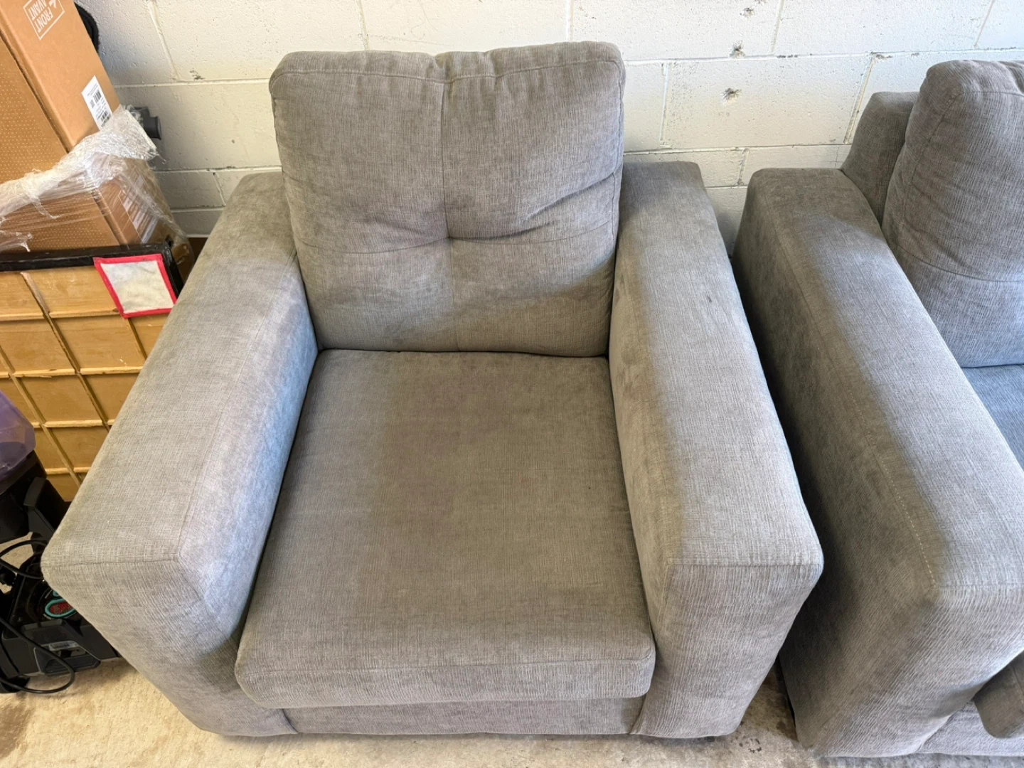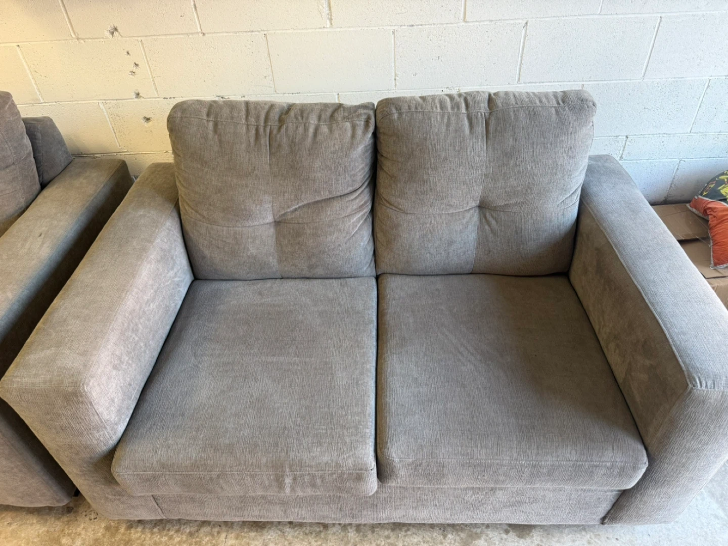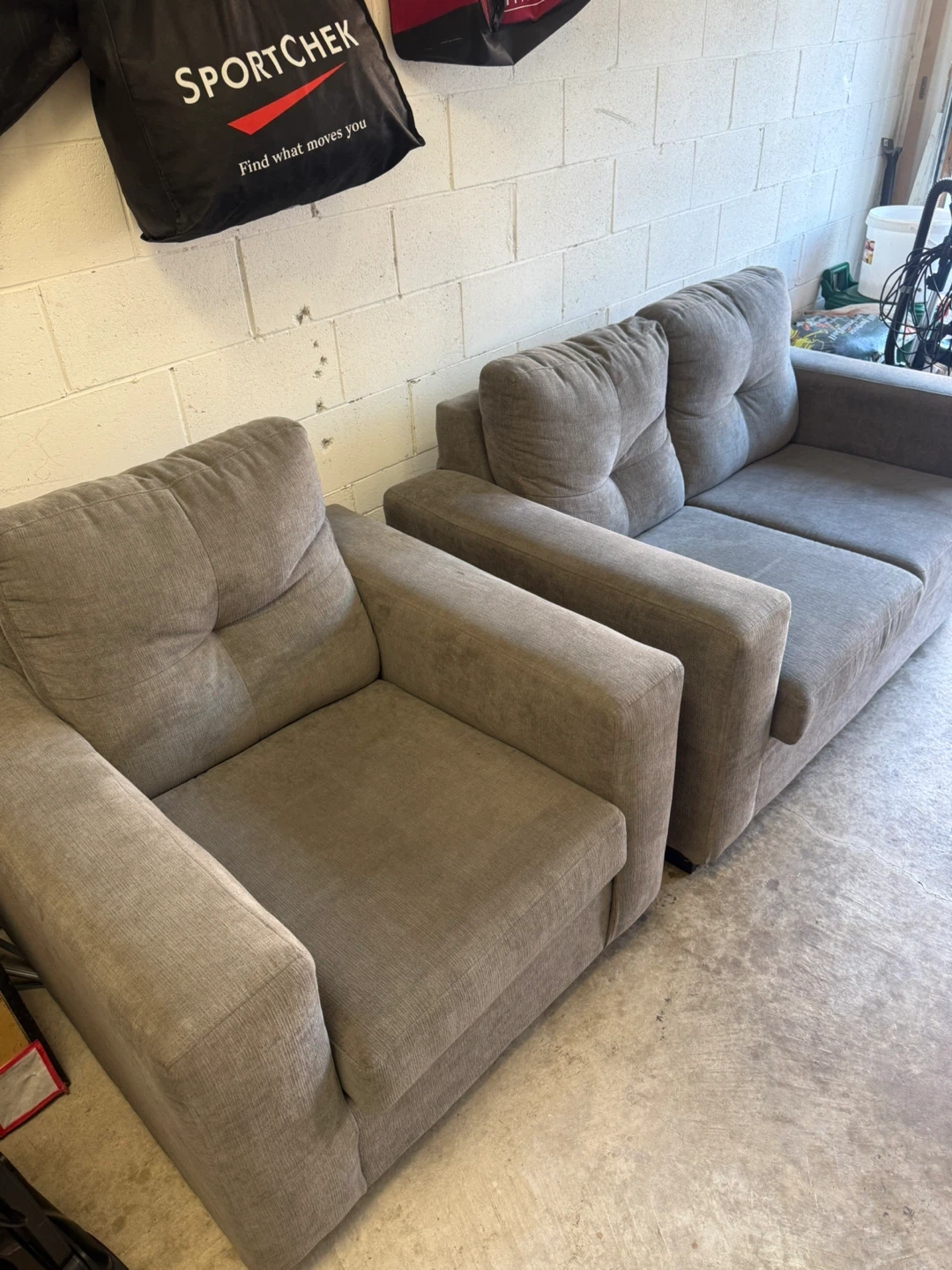 Selling a loveseat and armchair set. The colour is a neutral grey/beige. The set is in good condition, perfect for a living room or den. They are comfortable and stylish! Need gone asap
