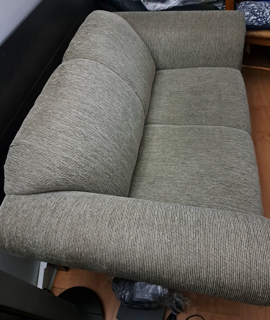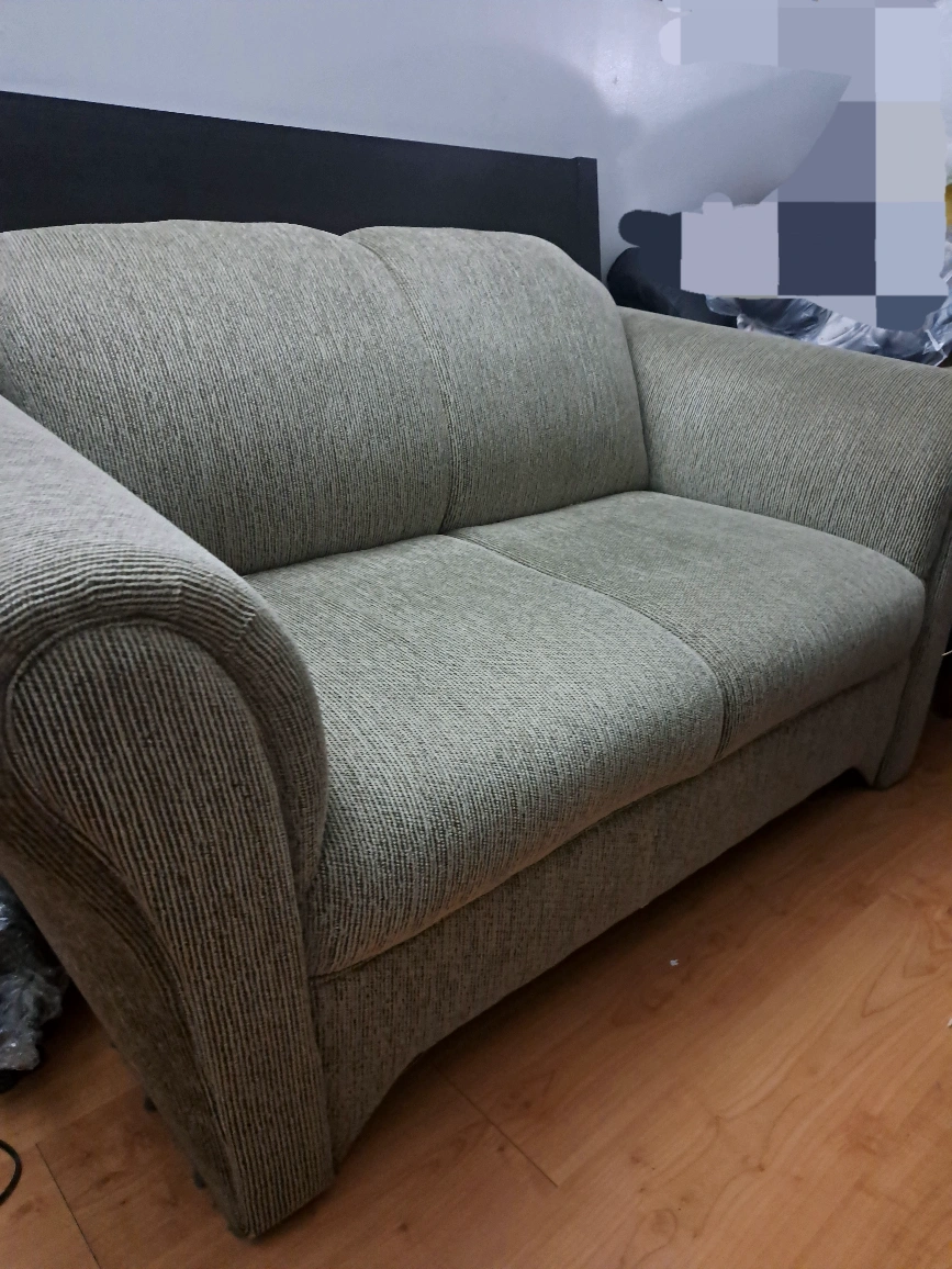 Selling a loveseat sofa in good condition. It's a comfortable two-seater, perfect for a small space or apartment. The fabric is a neutral colour that should fit in with most decor styles. It's been well-maintained and is ready for a new home!